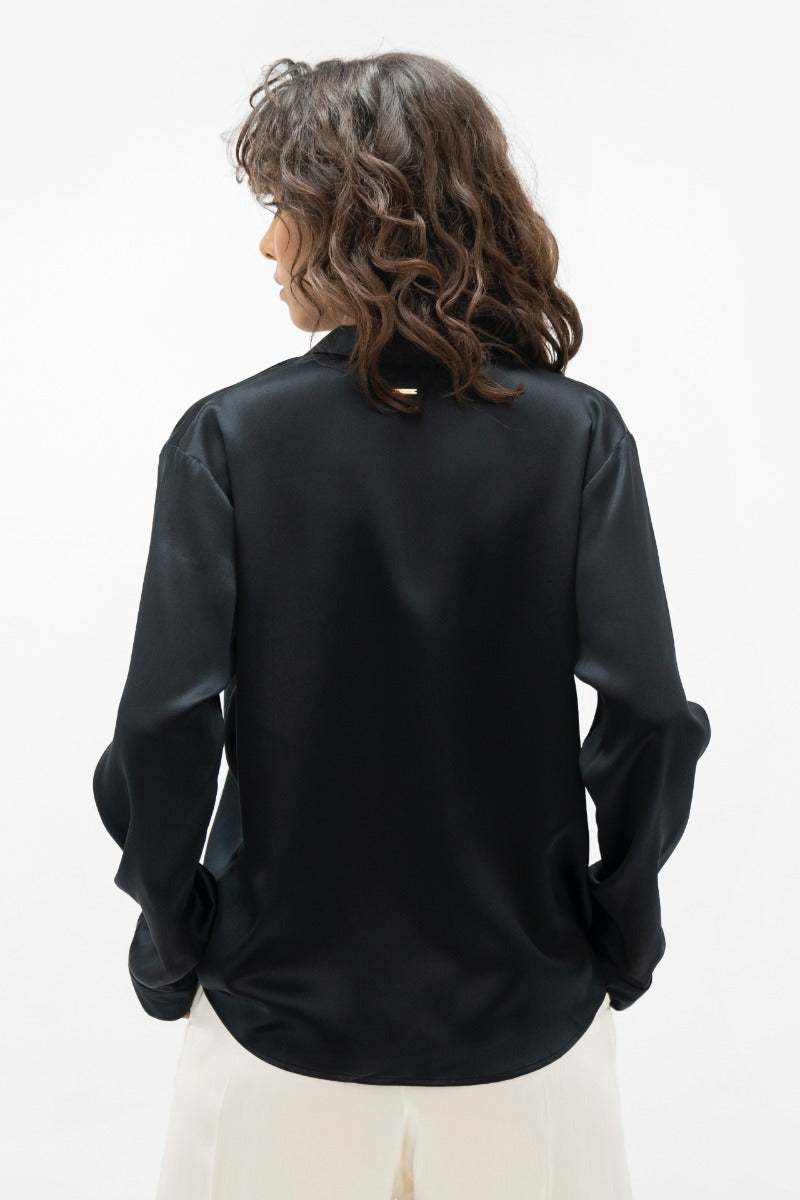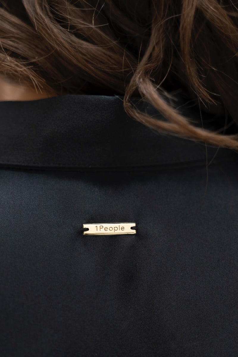 Details - Regular fit classic silk blouse- Shirt collar with stand- Long sleeves with slit hem cuff openings- Hidden button-down placket- 1 People brass shank button as the first top button- The buttons are Eco-rozo, recycled buttons made from tagua waste- 1 People brass logo at back- Made in Solo, Indonesia- bluesign® certified silk & dyeing