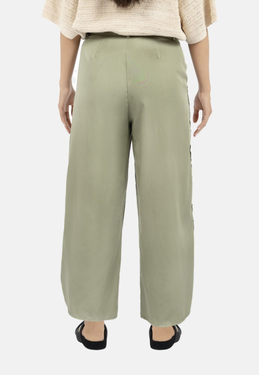 Details - High waisted - Slightly widening leg volume- Cropped length- Layered side detail- Curved edges at bottom- Slanted front pockets- No rear side seam- Extended waistband- Belt loops- Available in one additional colourway- Comes in foldable packaging from 100% waste papers