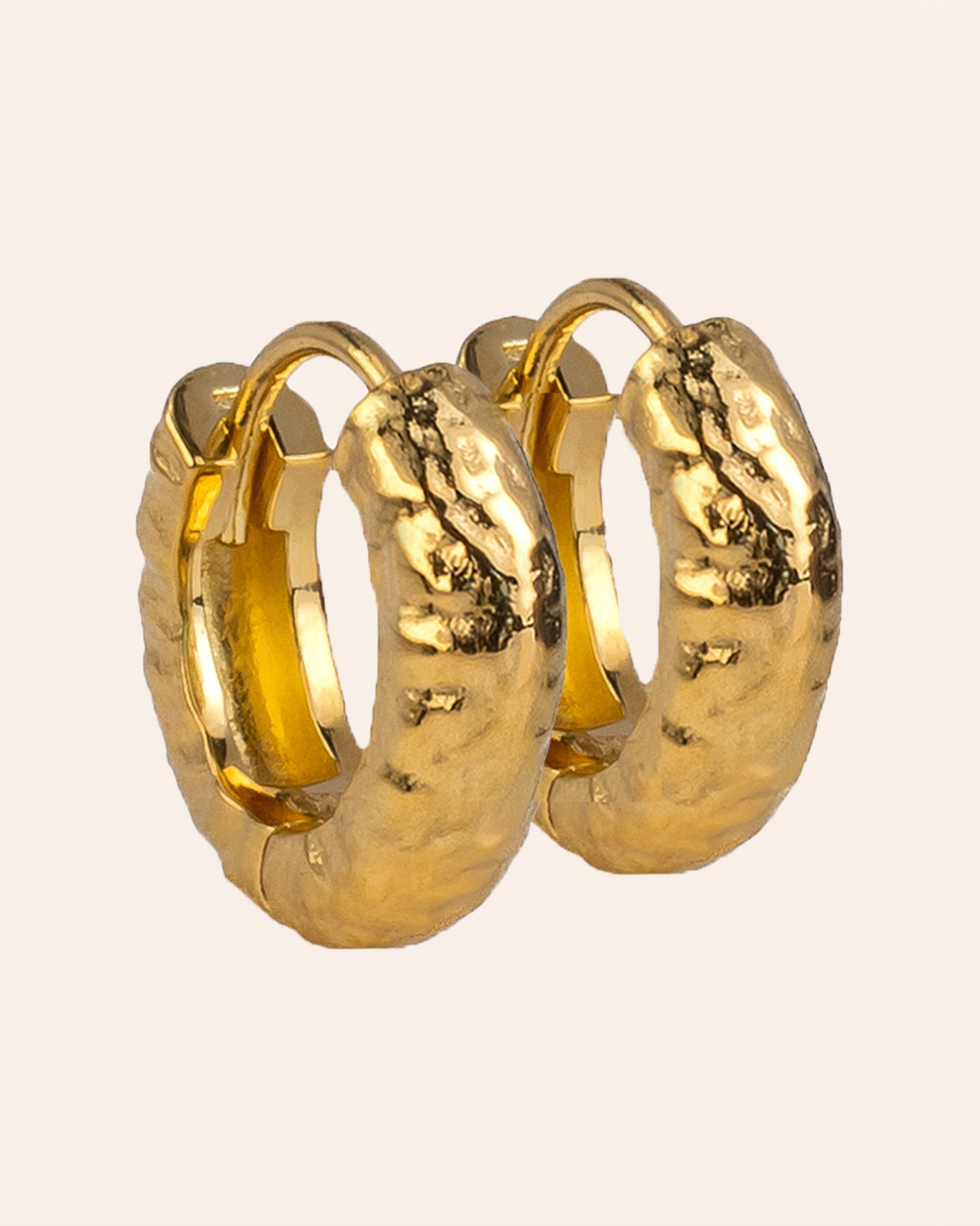 An essential staple earring, the Chunky Hoops take the effortless chic to the next level. Featuring a hammered style gold texture, these earrings will quickly become your ultimate companion from day to night✨