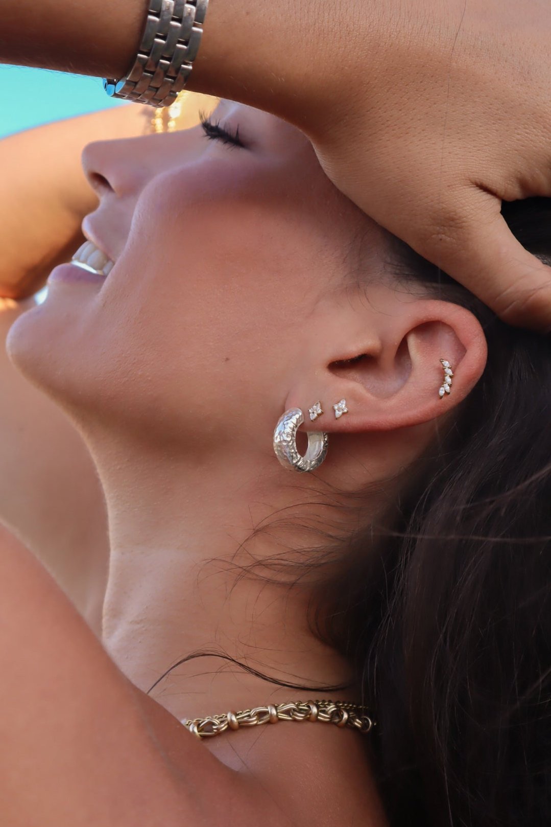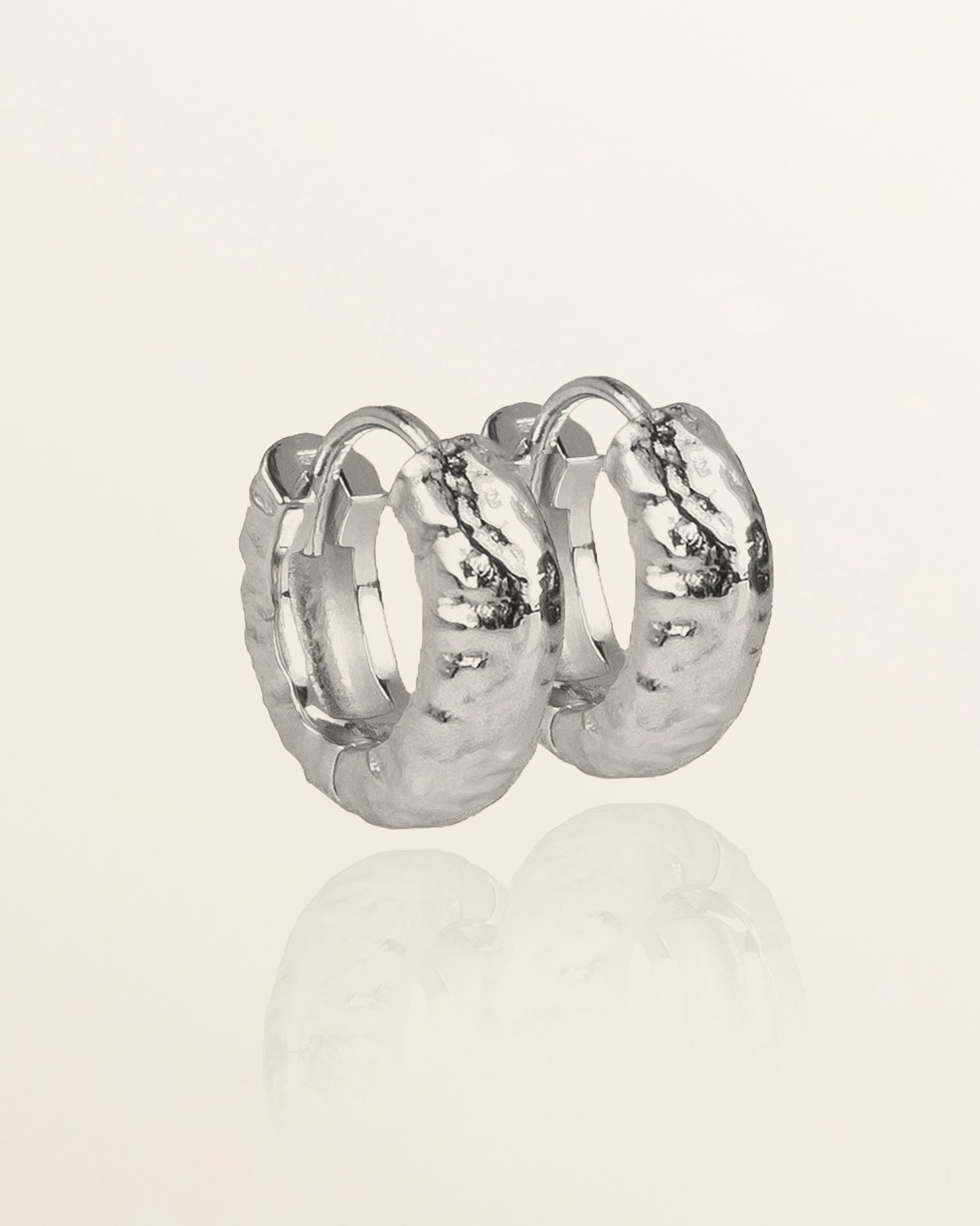 Elevate your style with these bold, hammered silver hoops, designed to make a statement. Carved out inside for a lightweight feel, they offer all-day comfort without compromising on impact. Ideal for transitioning from a chic daytime look to an evening ensemble.