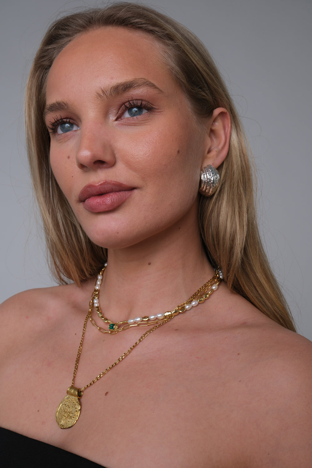 Sculptural and bold, these Oceana Studs draw inspiration from the organic curves of seashells. These oversized stud earrings catch the light beautifully, adding an eye-catching look to every outfit. Wear these large stud earrings solo or pair them with a bold chain. Available in gold and in a small studs version: Oceana Studs Mini.