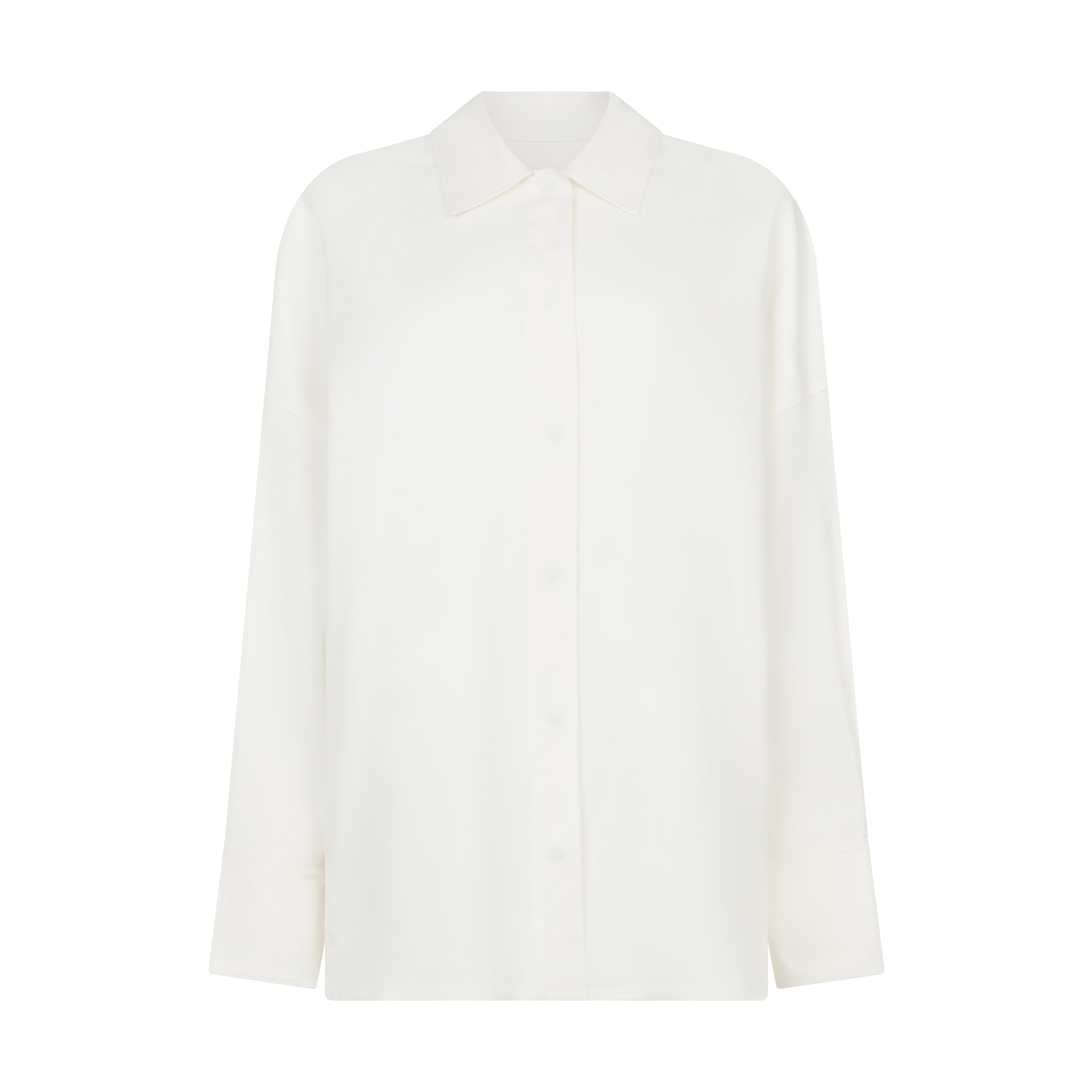 This overshirt is designed to evolve to suit your needs through a panel system on the side seams. Depending on the size you feel you need on the day, you can select and insert one of three panels to suit your needs. The panels, front closure and cuffs are all closed with poppers so that the shirt is considerate to your level of finger dexterity. All popper closures are concealed for a streamlined appearance. Made from high quality 335g durable cotton with a touch of elastane for stretch, the shirt features dropped armholes for comfort and ease of movement. Balloon sleeves cinched with an elongated cuff to provide a flattering silhouette. The overshirt can be worn as a lightweight jacket or a standalone shirt, offering flexibility in styling.