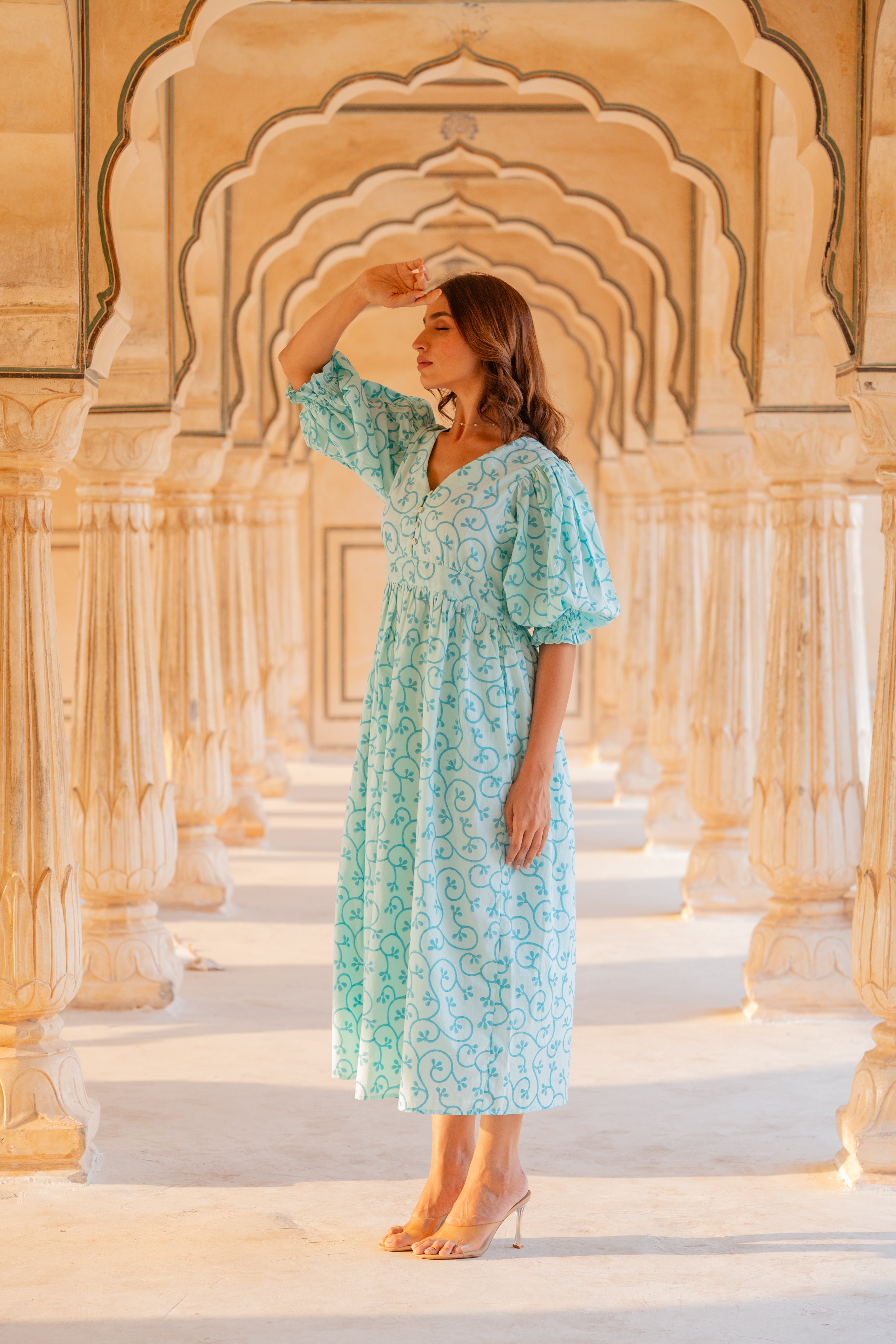 The Sea Swirl Print has been lovingly block-printed by hand in Jaipur.