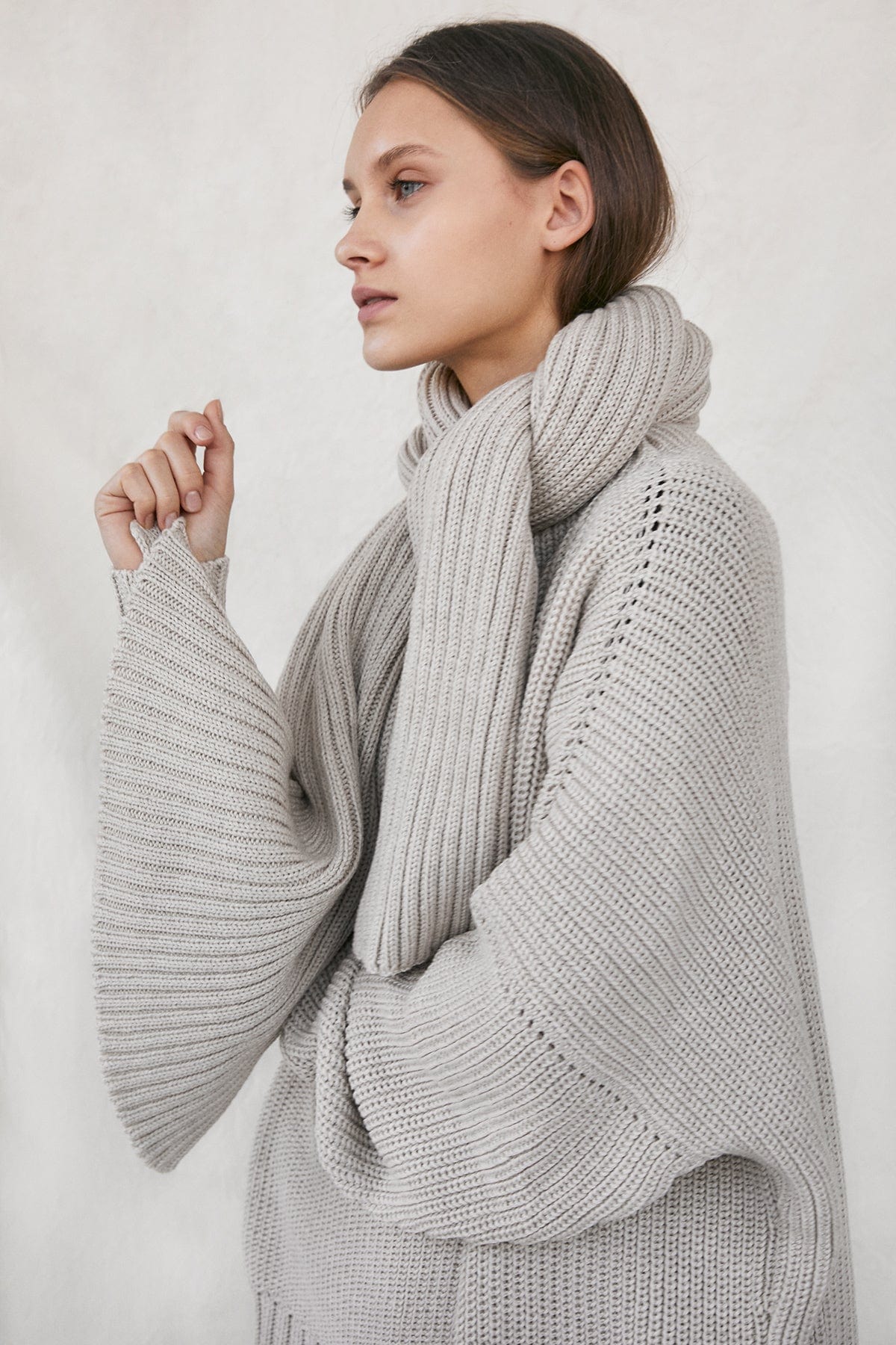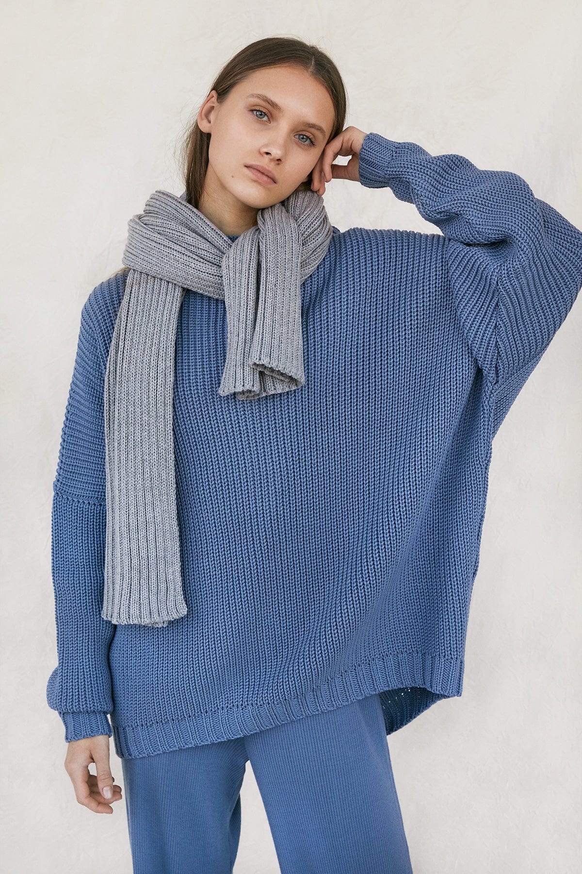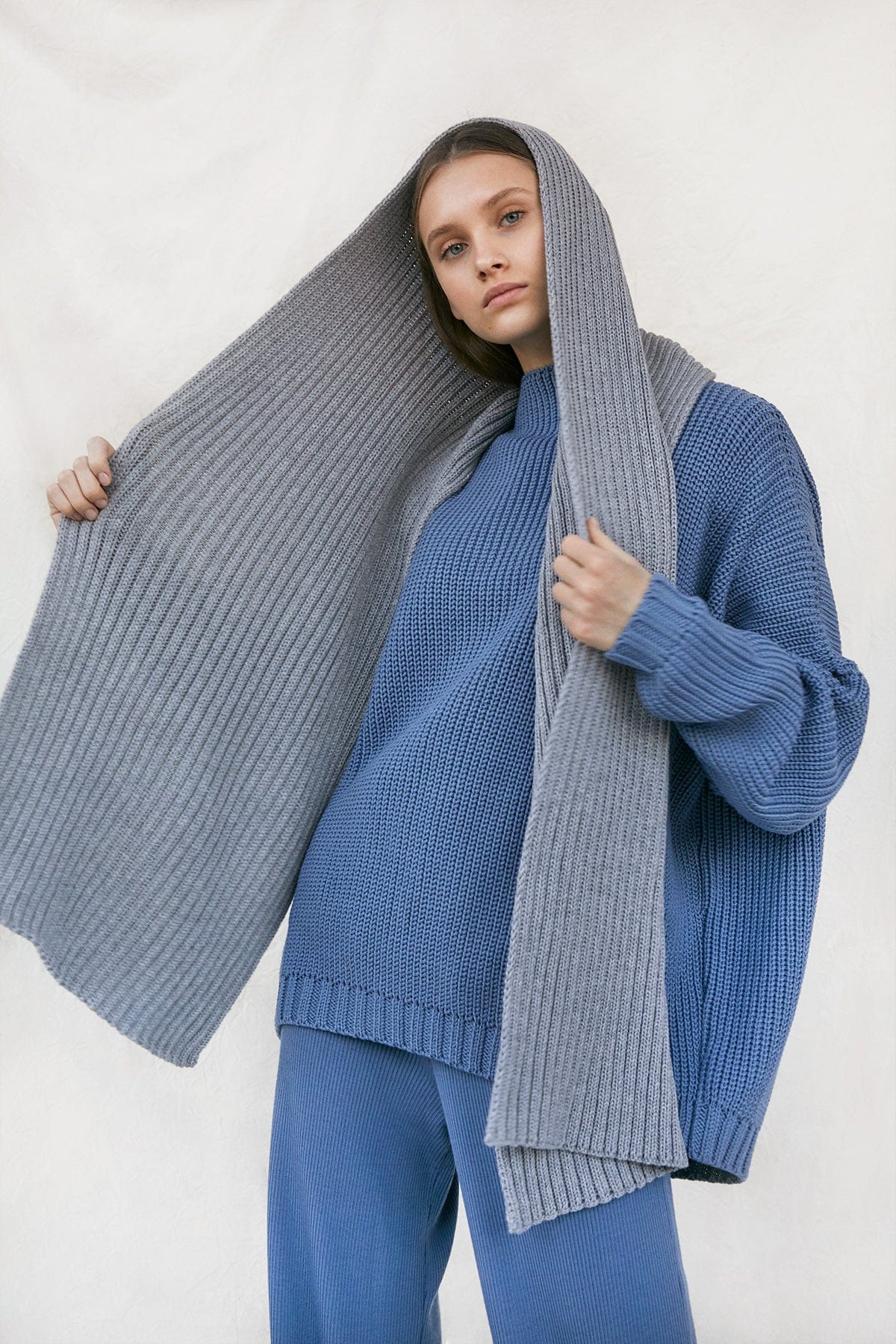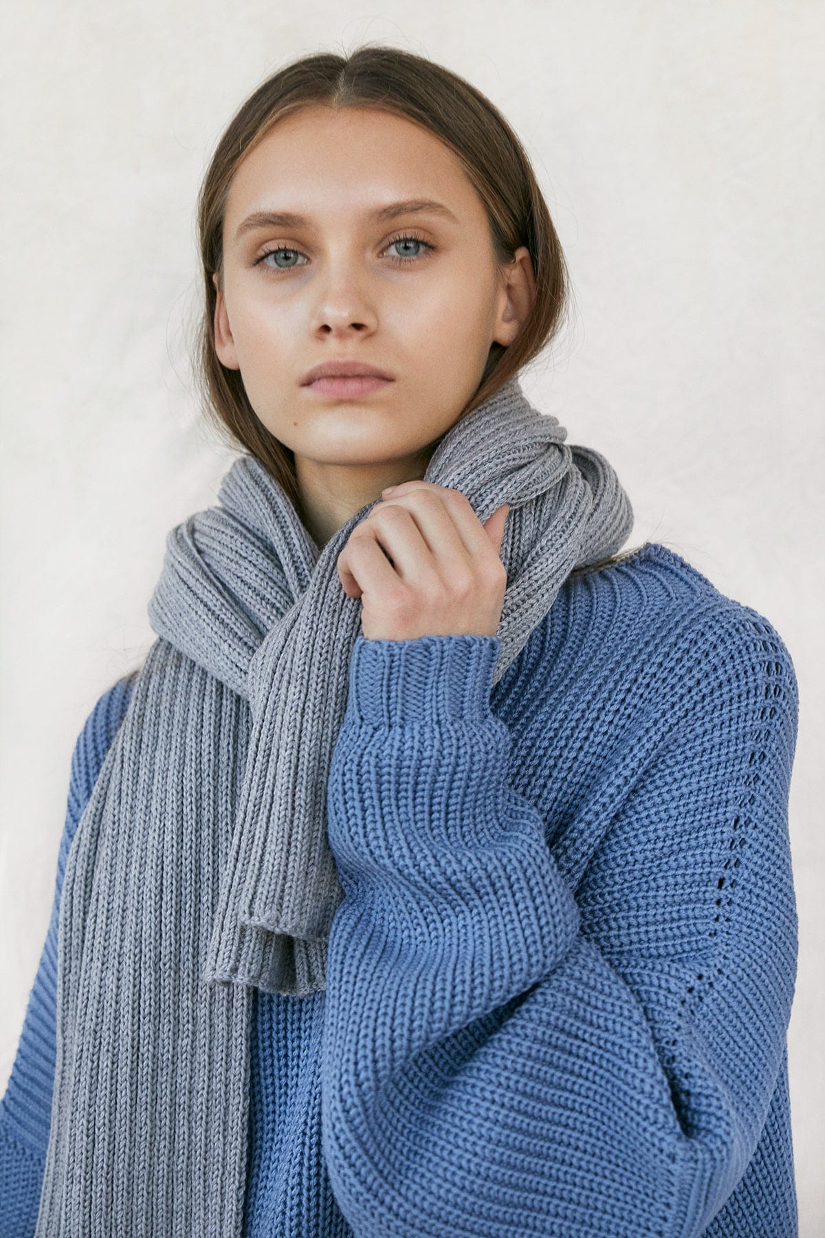 Cozy up in our Rib Scarf. It was spun from soft, extra fine merino wool and is extra chunky. Mix & match it with one of our sweaters or wear is separately. We love it styled as a set with the matching Laumės knit or matching Milda Turtleneck