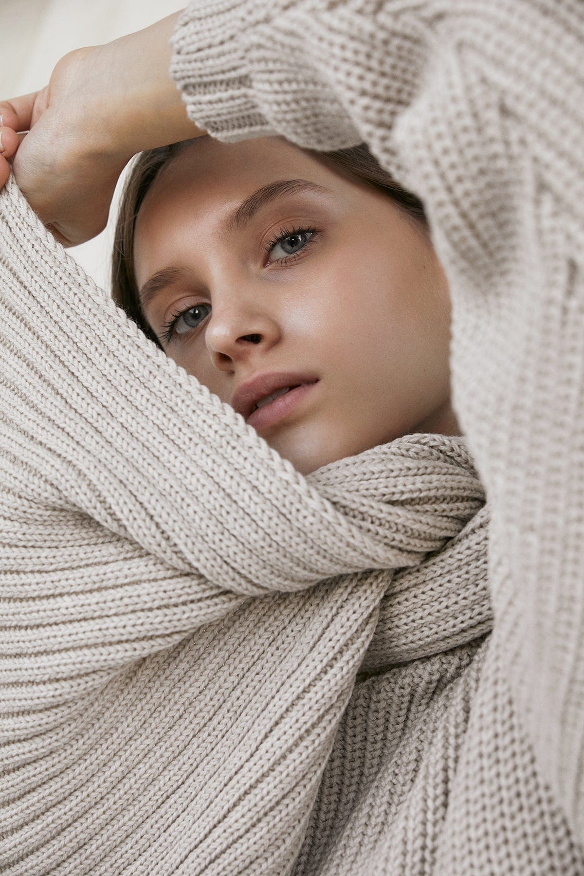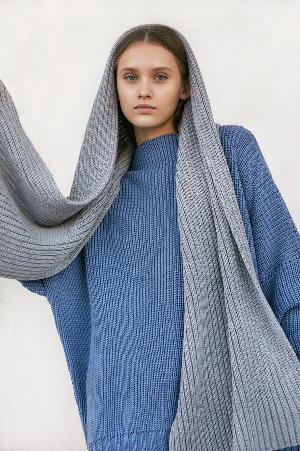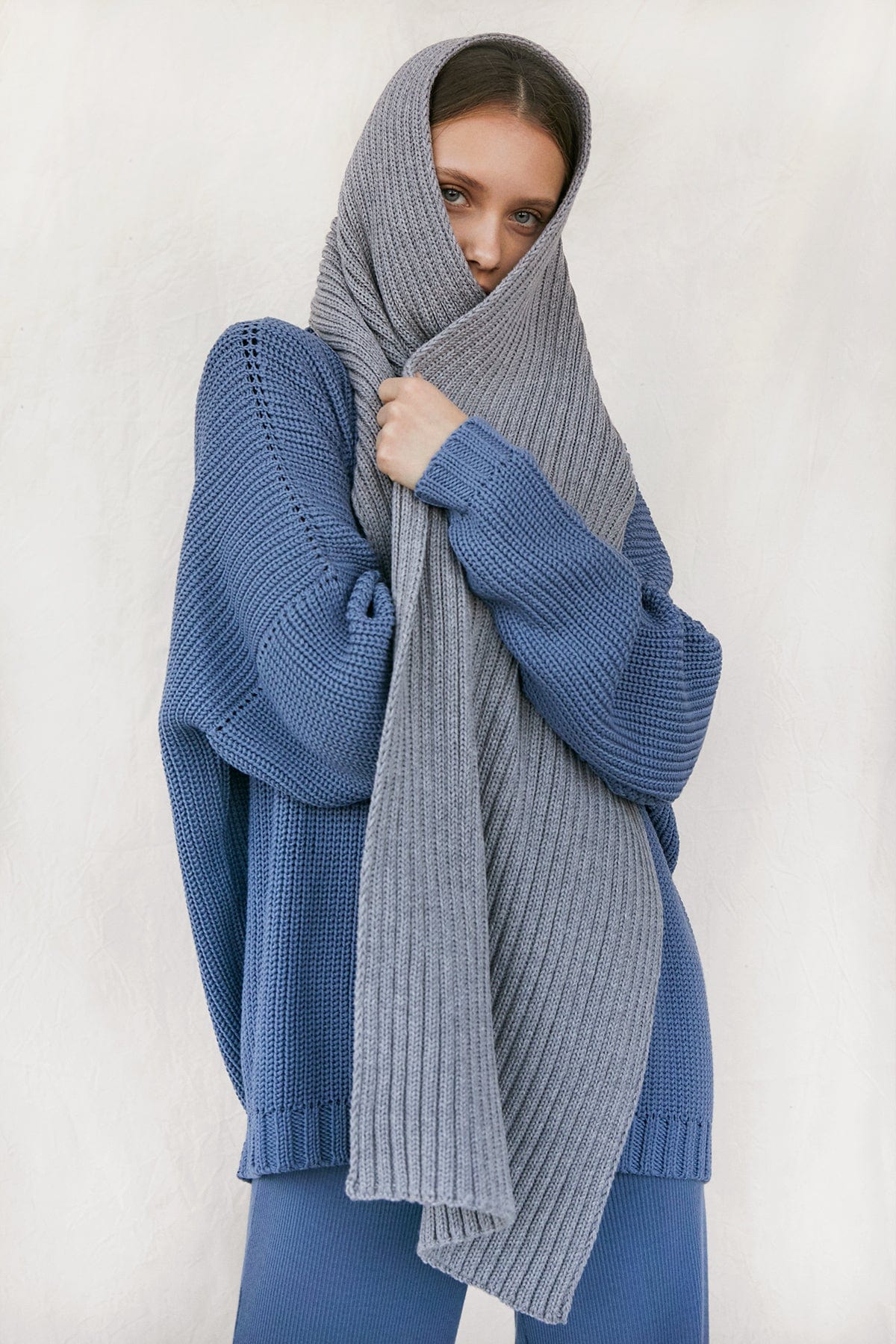Cozy up in our Rib Scarf. It was spun from soft, extra fine merino wool and is extra chunky. Mix & match it with one of our sweaters or wear is separately. We love it styled as a set with the matching Laumės knit or matching Milda Turtleneck