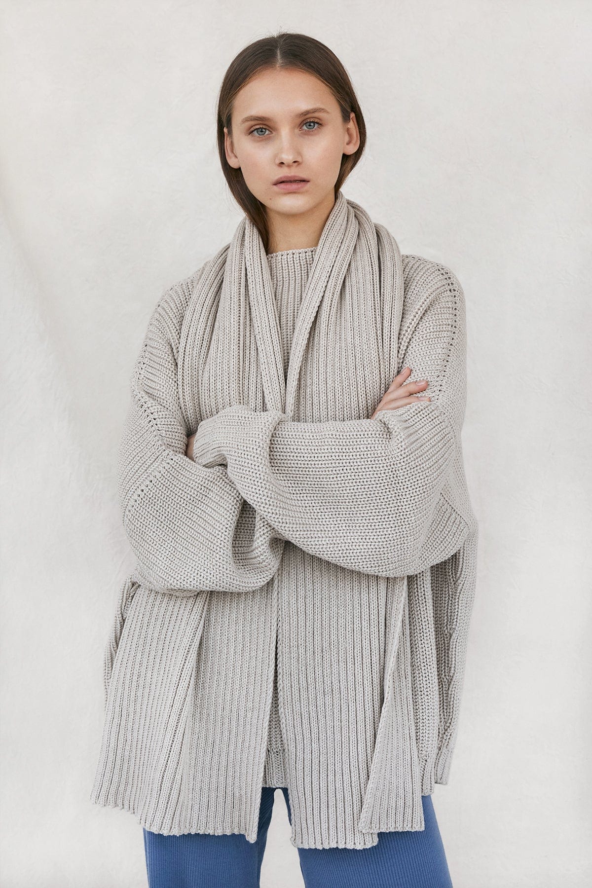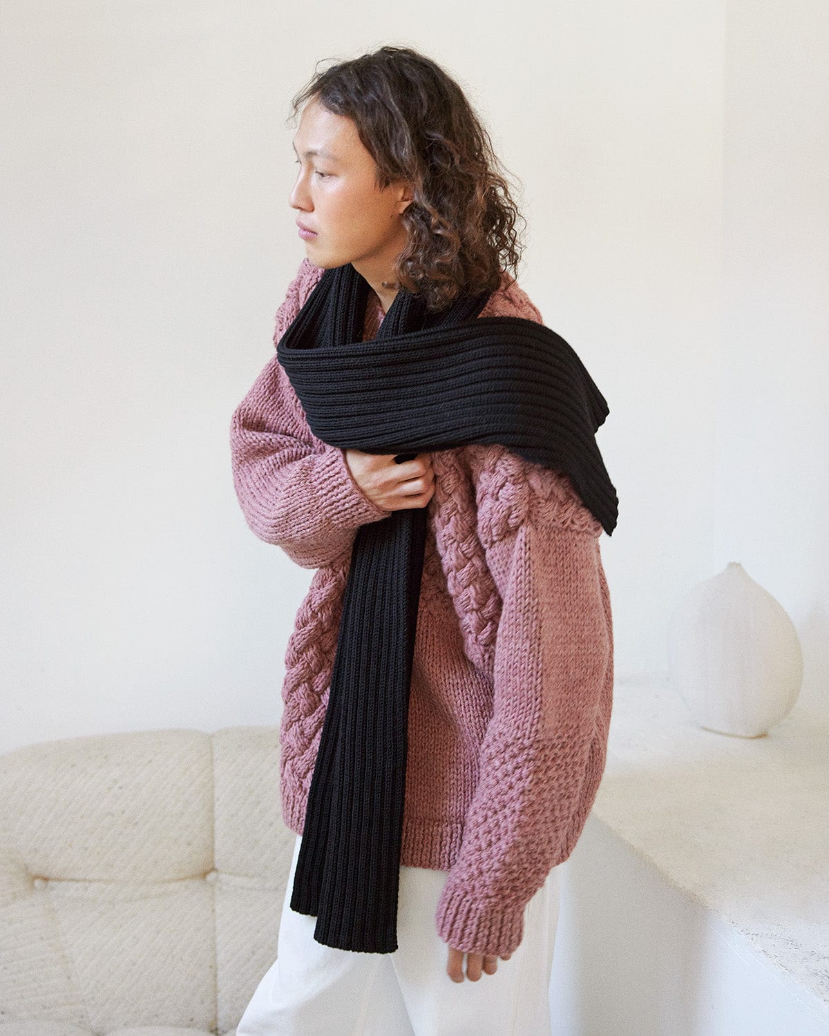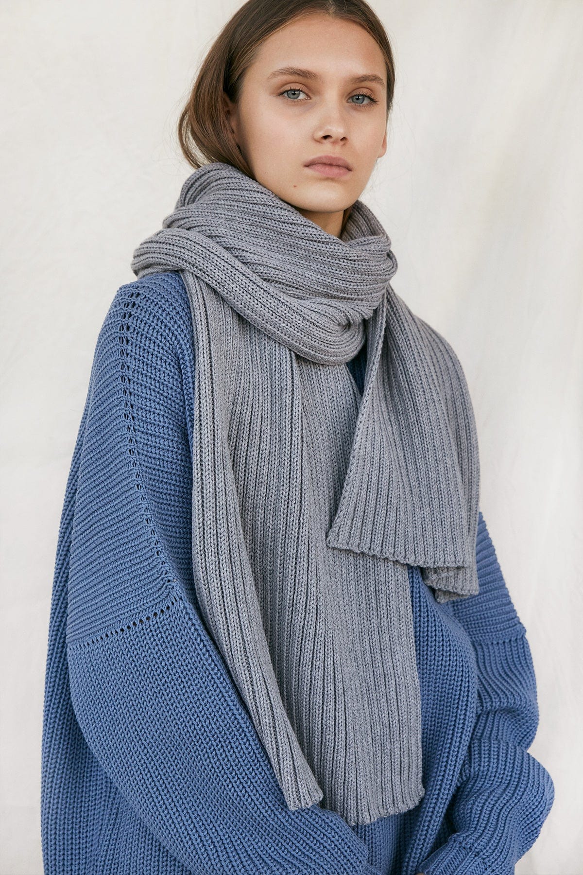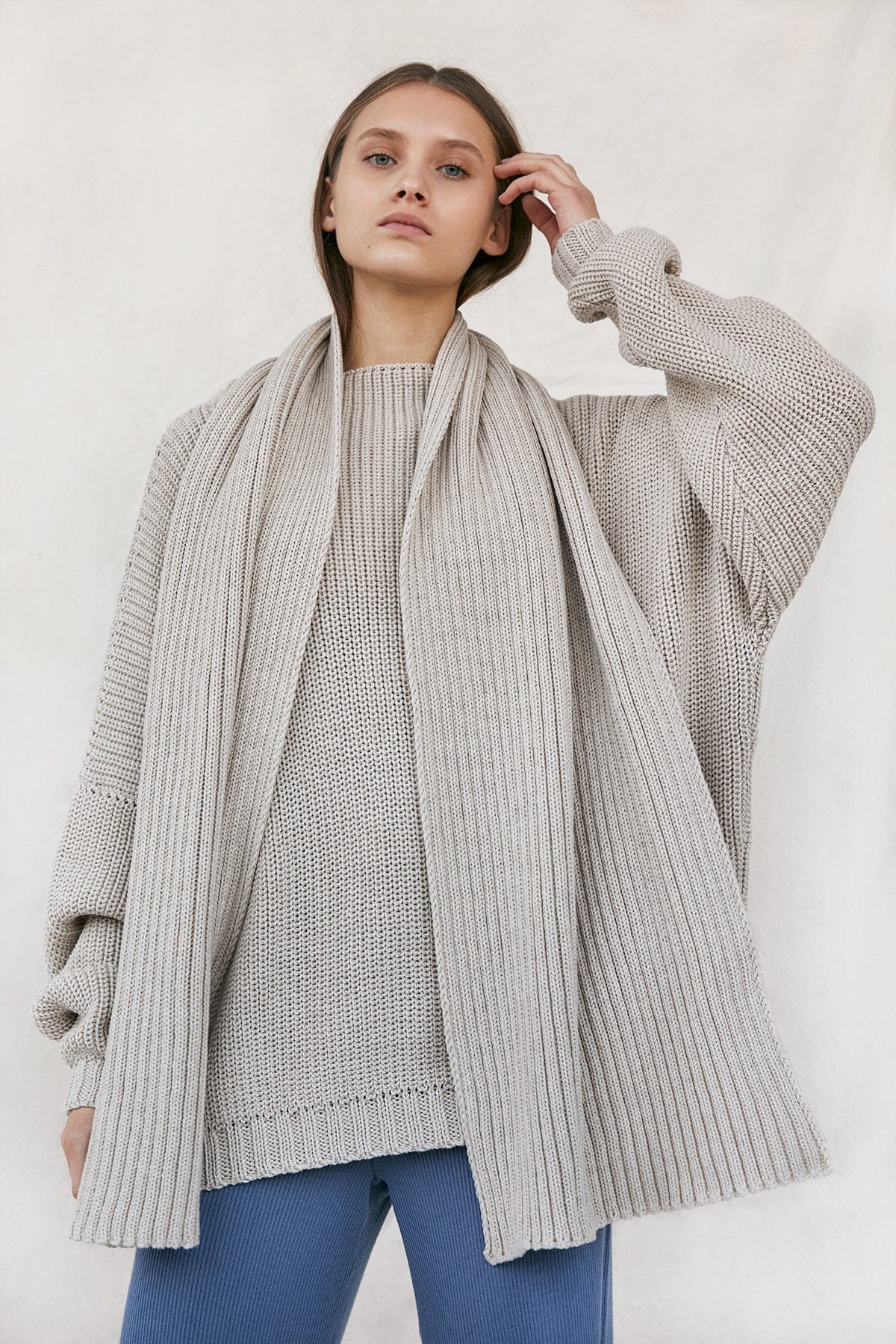Cozy up in our Rib Scarf. It was spun from soft, extra fine merino wool and is extra chunky. Mix & match it with one of our sweaters or wear is separately. We love it styled as a set with the matching Laumės knit or matching Milda Turtleneck
