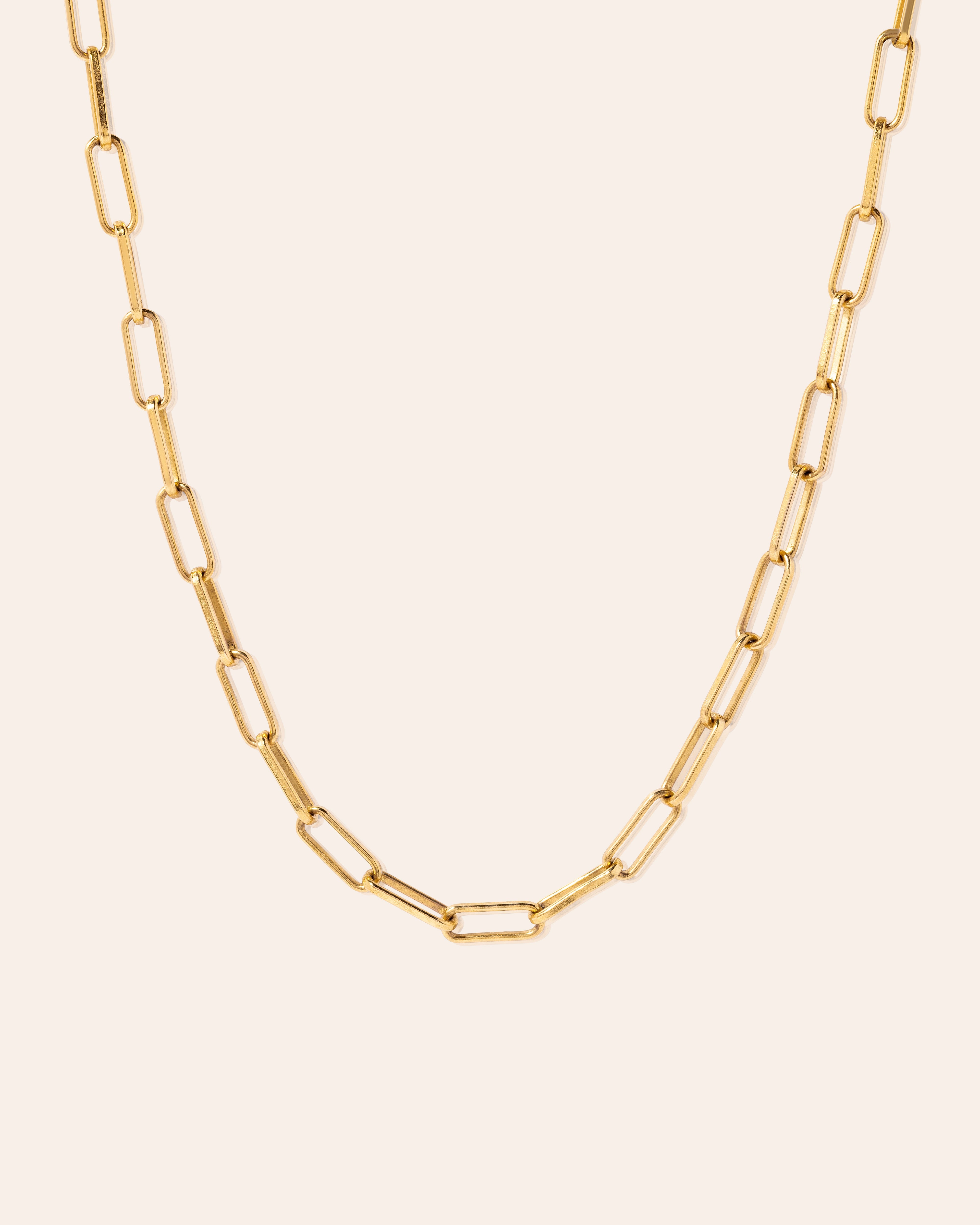 Sleek and versatile, the 18ct gold-plated Paperclip Necklace is perfect for everyday wear. Pair it with the matching Paperclip Bracelet or layer it with other necklaces for a more intricate style. Add our gemstone charms for a pop of colour and a personal touch.