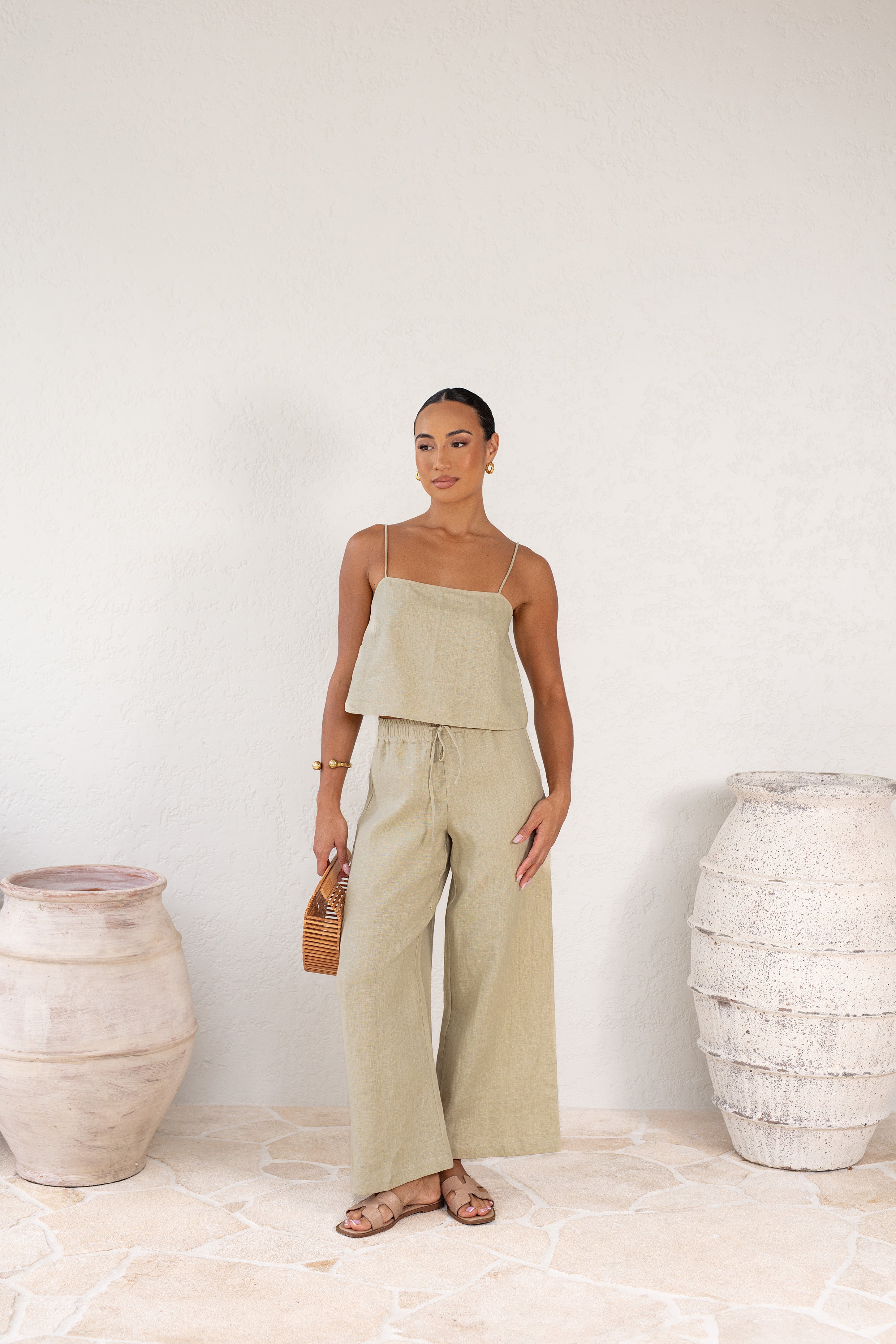 Introducing the Bari Cropped Cami, a revamped version of our classic camisole. Made from lightweight linen, this crop top is the perfect addition to any wardrobe. Pair it with our trousers for a chic and effortless look.