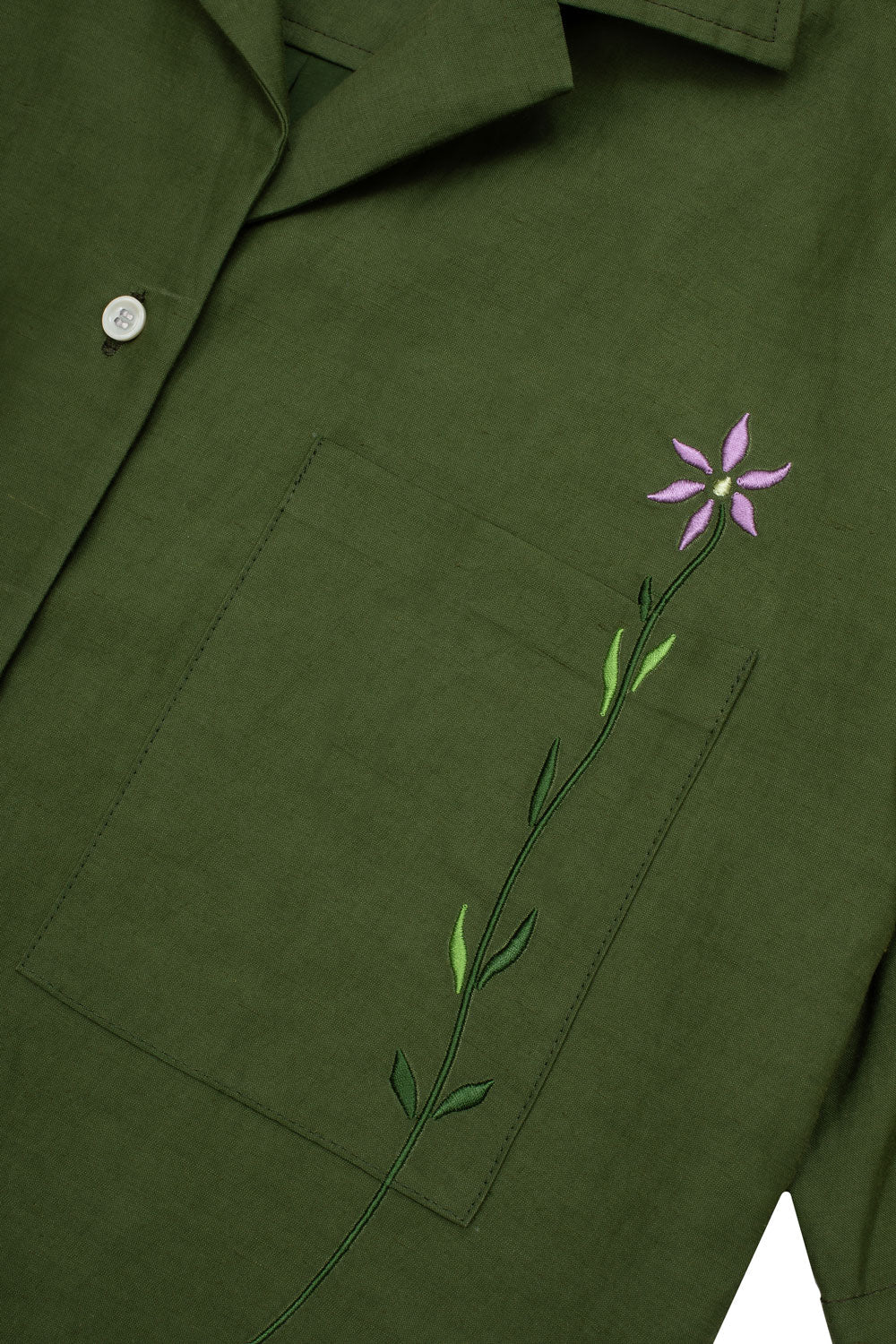 Frances Unisex Cuban Shirt, Rich Olive Green