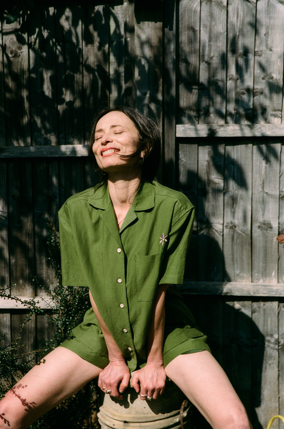 The Frances Shirt is handmade in London at Apparel Tasker, just down the road from the Saywood studio, keeping our carbon footprint minimal. Our textured olive cloth is from designer deadstock, bought through Fabric House, an Italian supplier who helps ensure surplus cloth from fashion houses gets repurposed. We’ve used Codelite® for our buttons, a natural material made from casein, a protein derived from milk. Codelite® is also biodegradable, which means your shirt’s impact on the environment once it reaches the end of its lifecycle will be reduced further.