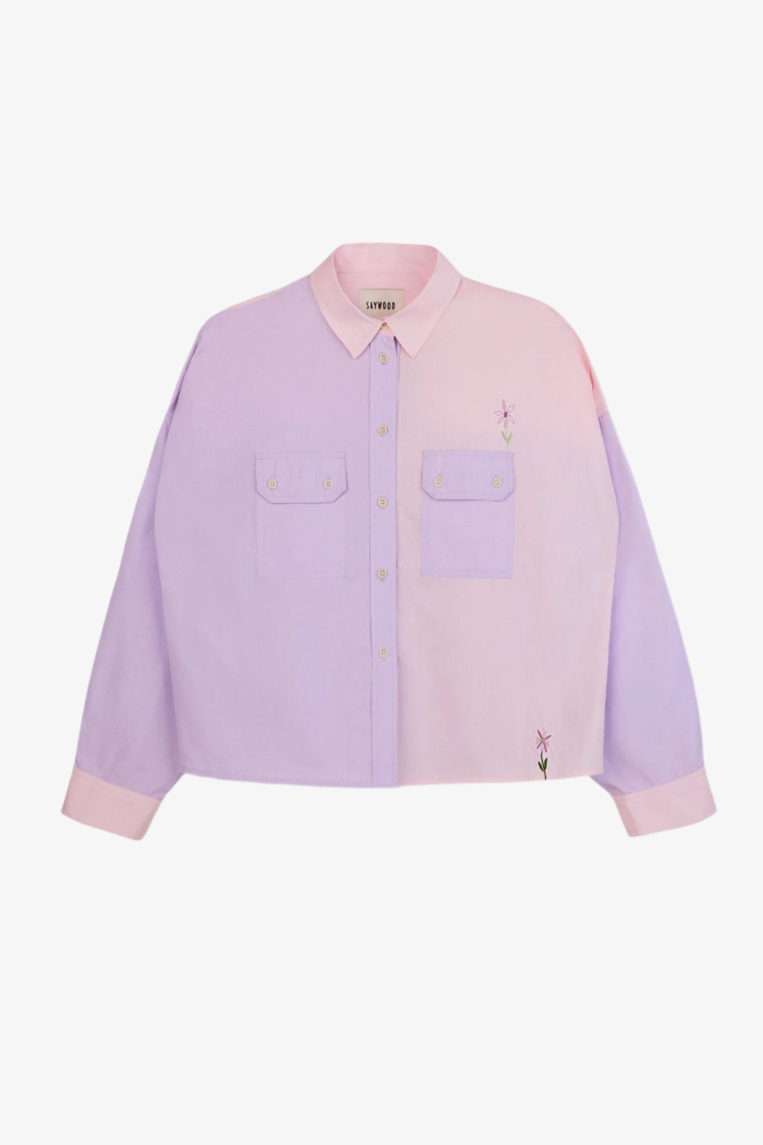 Our colourful Jules patchwork shirt puts a fun, feminine twist on shirting. Designed in soft lilac and pink, it’s subtly embroidered with delicate florals and finished with natural cream corozo buttons. Made from cotton, it’s cut in an oversized silhouette for easy, everyday wear.
