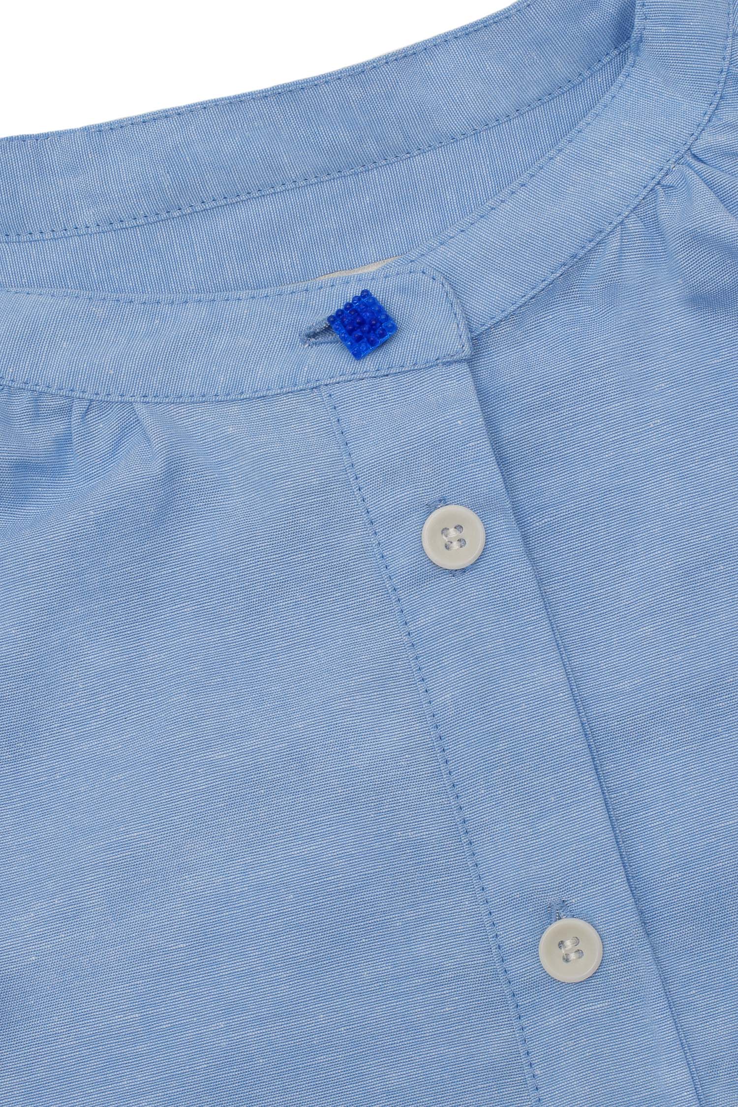 Marie A-Line Blouse With Gathered Neck, Blue Recycled Cotton