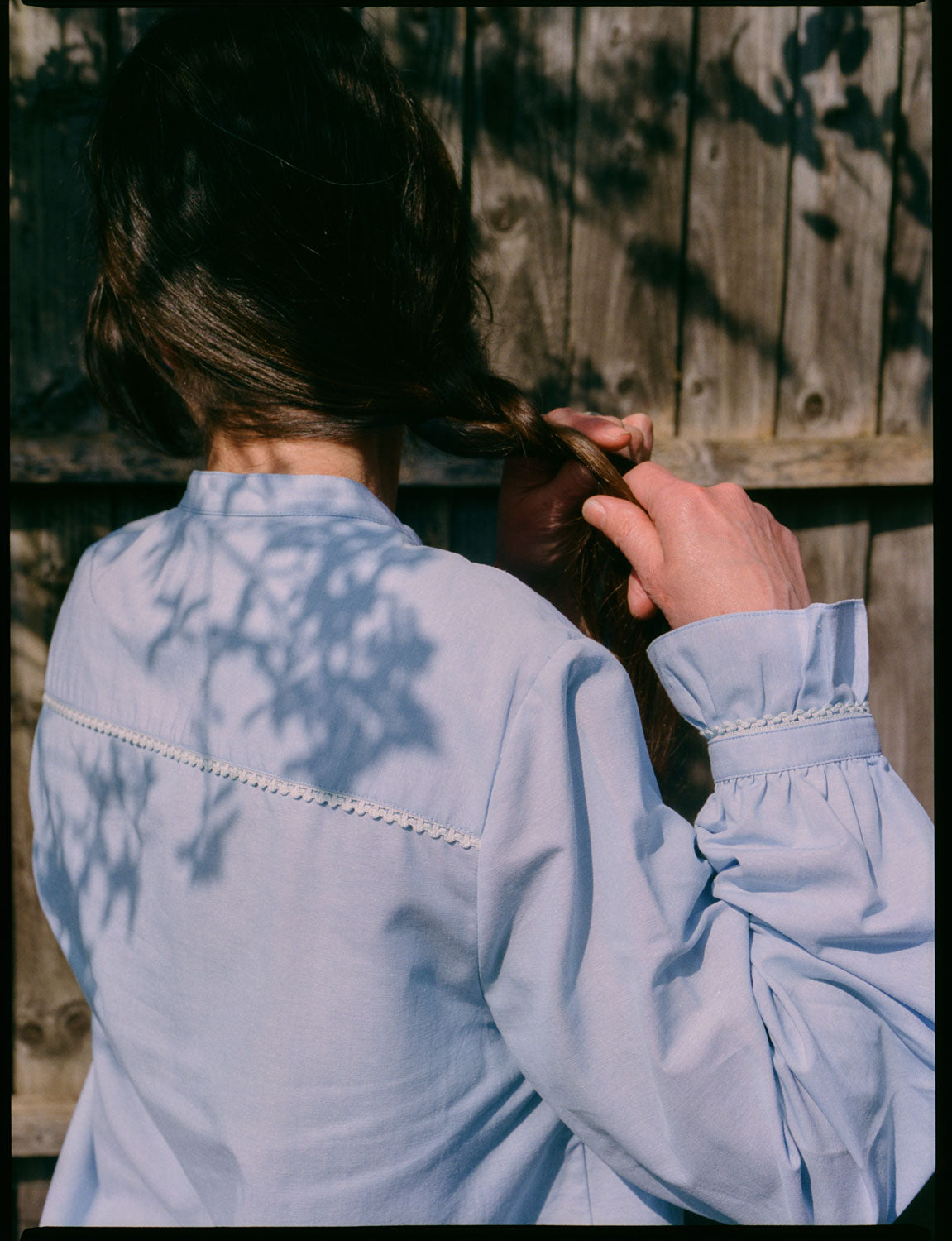 Holding true to our ethos of sustainability, our blouse is made in London to lower our carbon footprint, using recycled cotton from the Canclini mill in Italy. It’s also finished with environmentally friendlier corozo buttons.