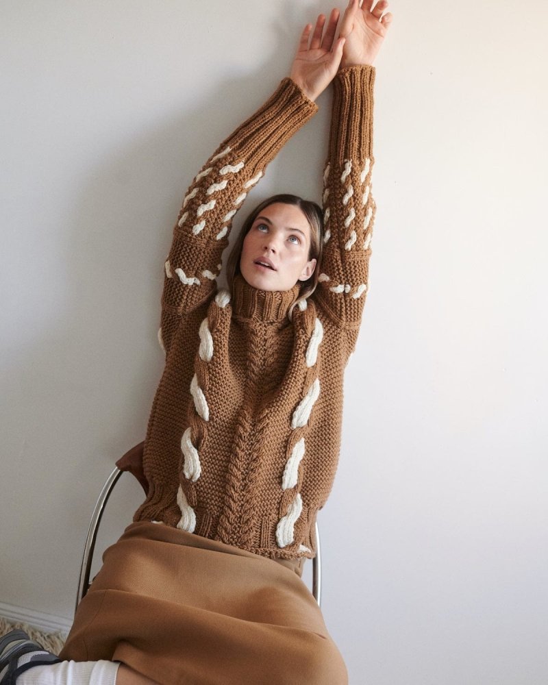 Our Barbora knit was inspired by its namesake: Barbora Radvilaitė, Grand Duchess of Lithuania. Cozy-soft yet structured, she’s a knit filled with contrasts, right down to the grey and off-white stitching that cascades down her sleeves. Much like the real Barbora, she's ready to tackle whatever comes her way, whether that's a bittersweet love story or a seriously cold winter day. This turtleneck is pretty oversized. If you like a more fitted knit, pick sizing down.