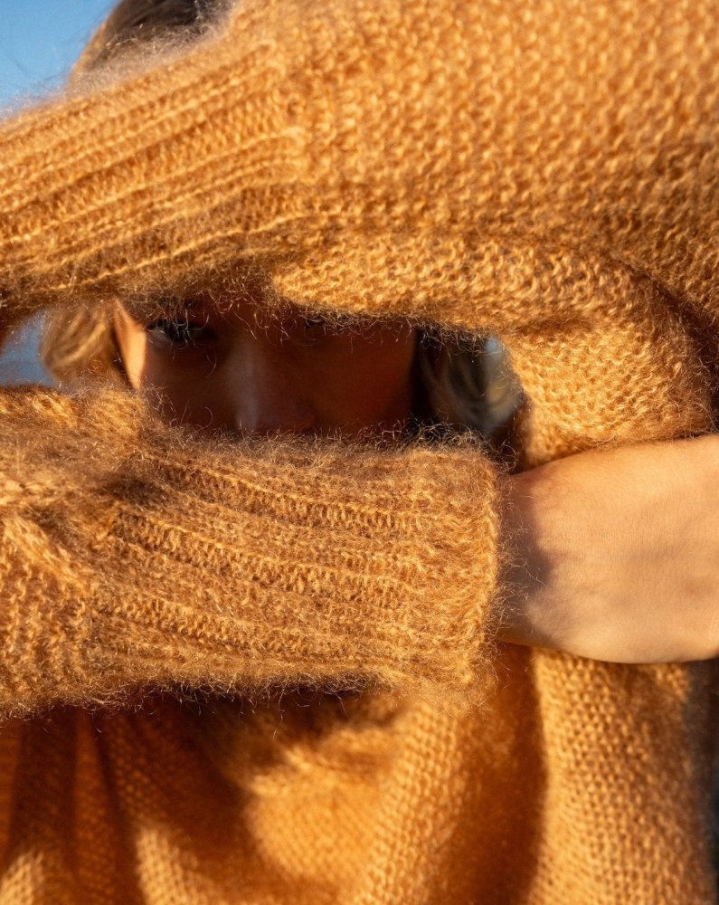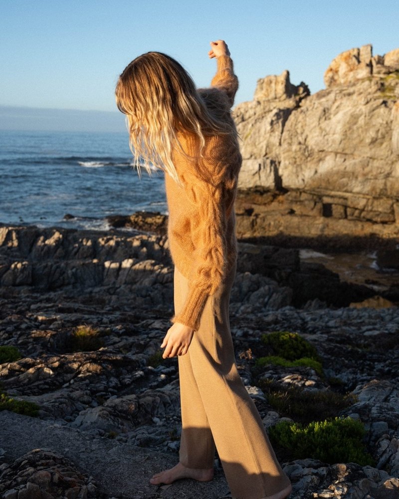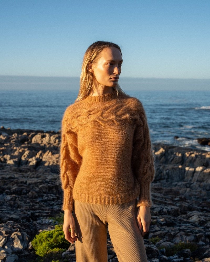 Jūra's super-soft Silk and Mohair blend flows like water, from one hand-made cable-knit cuff right through to the other. Gentle and soft to the touch, this silk mohair sweater is inspired by the Baltic Sea and will have you daydreaming of trips to the Baltic seaside. Runs true to size. Recommended to take your normal size.