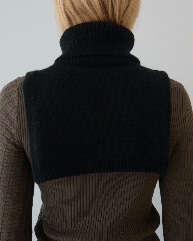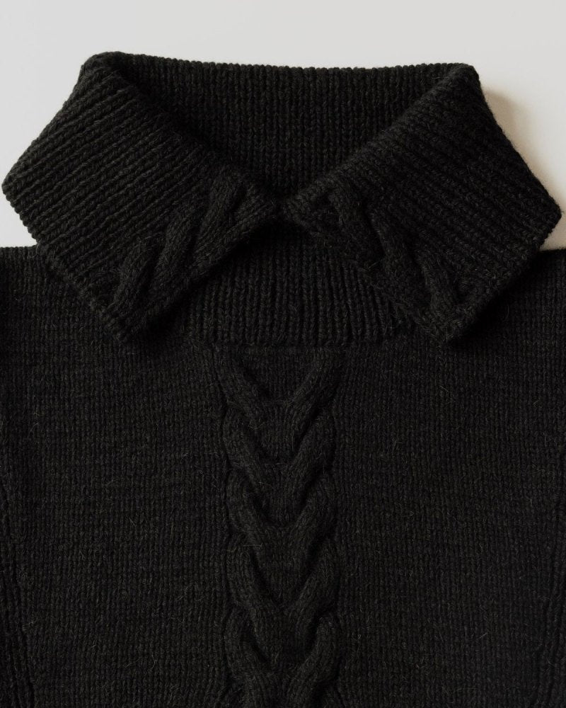 Introducing the Pynė Neckwarmer, a winter staple handmade from the finest wool and Alpaca baby Suri. Designed with versatility in mind, it features the striking “Jūra” cable, which is cleverly split to form a high fold-over collar. Its hook-and-eye closure lets you wear it as an open collar or fasten it when the chill sets in. Whether layered under a jacket or worn as a standalone piece, Pynė’s signature The Knotty Ones cables make it a standout. And for a little extra flair? You can wear it back to front.