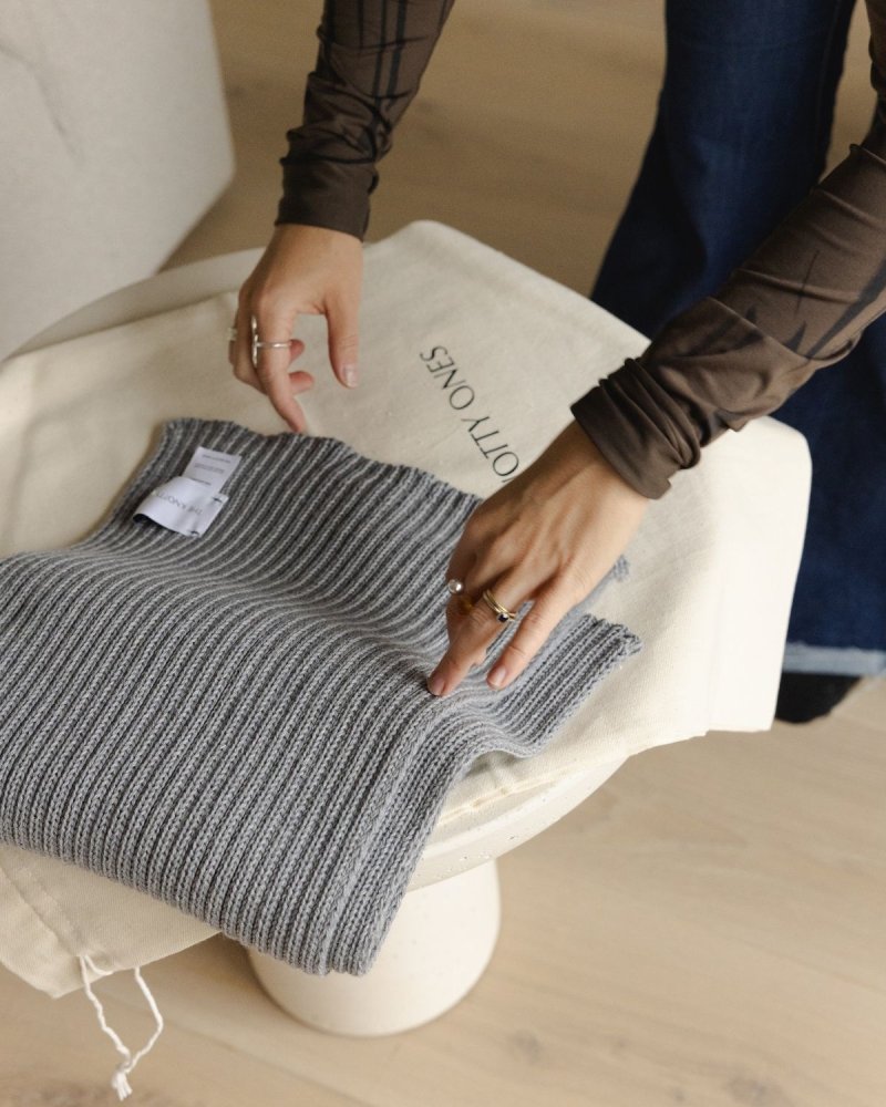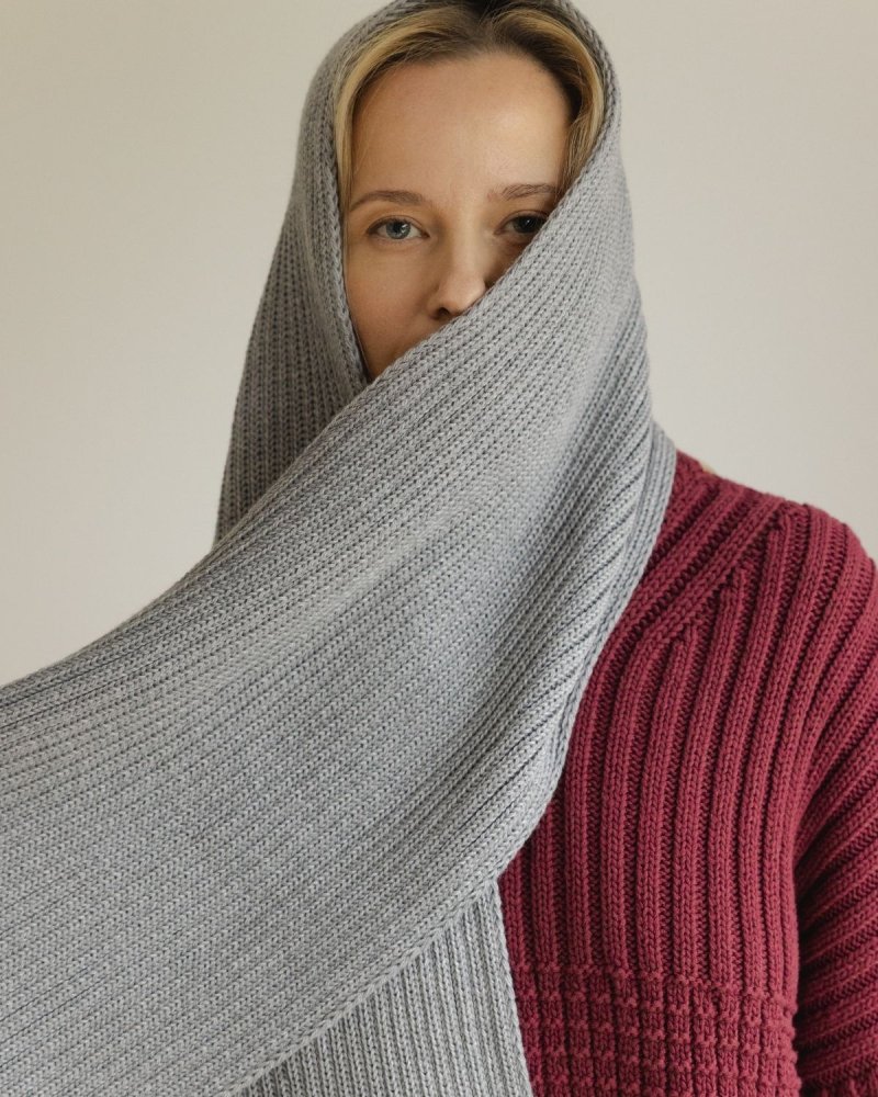 Cozy up in our Rib Scarf. It was spun from soft, extra fine merino wool and is extra chunky. Mix & match it with one of our sweaters or wear is separately. We love it styled as a set with the matching Laumės knit or matching Milda Turtleneck.