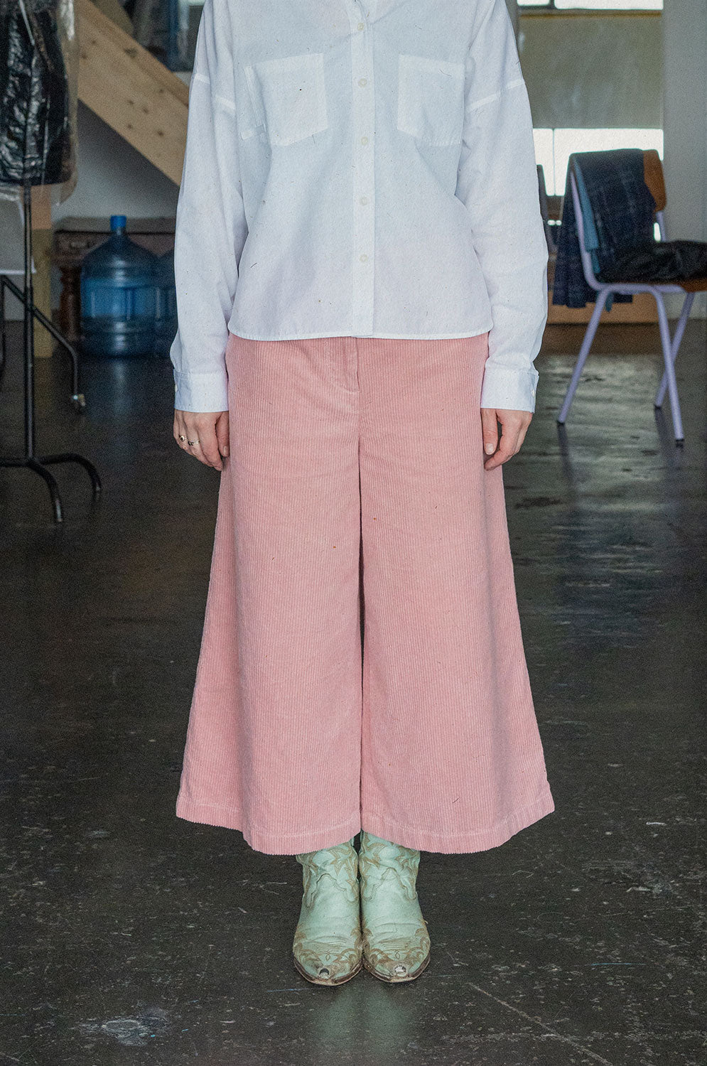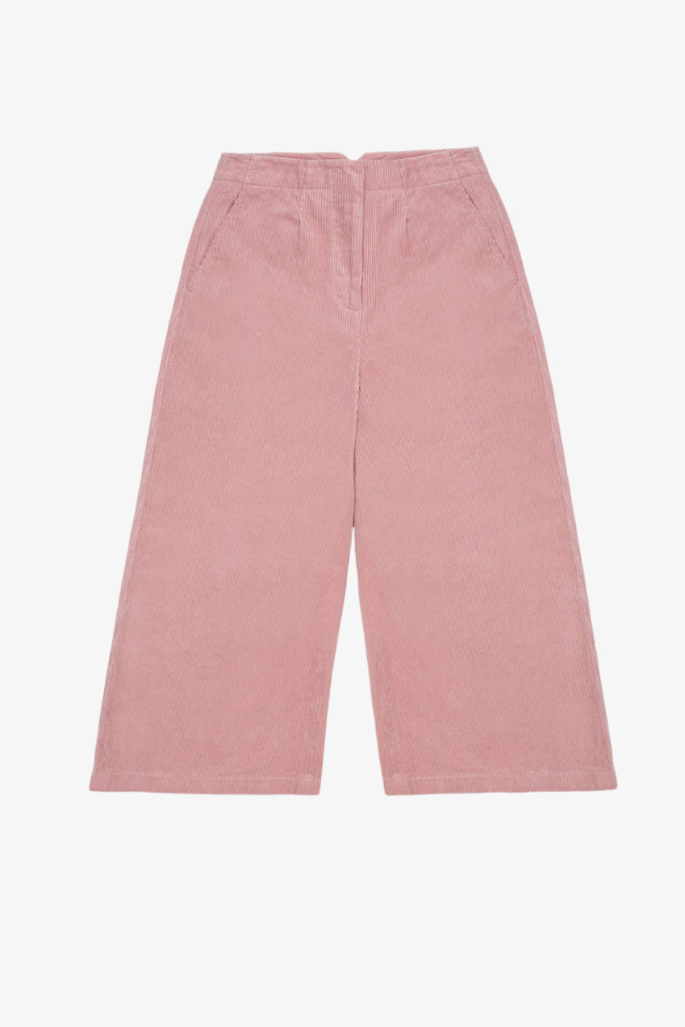 Amelia Wide Leg Culotte Trouser, Pink Corduroy Cotton