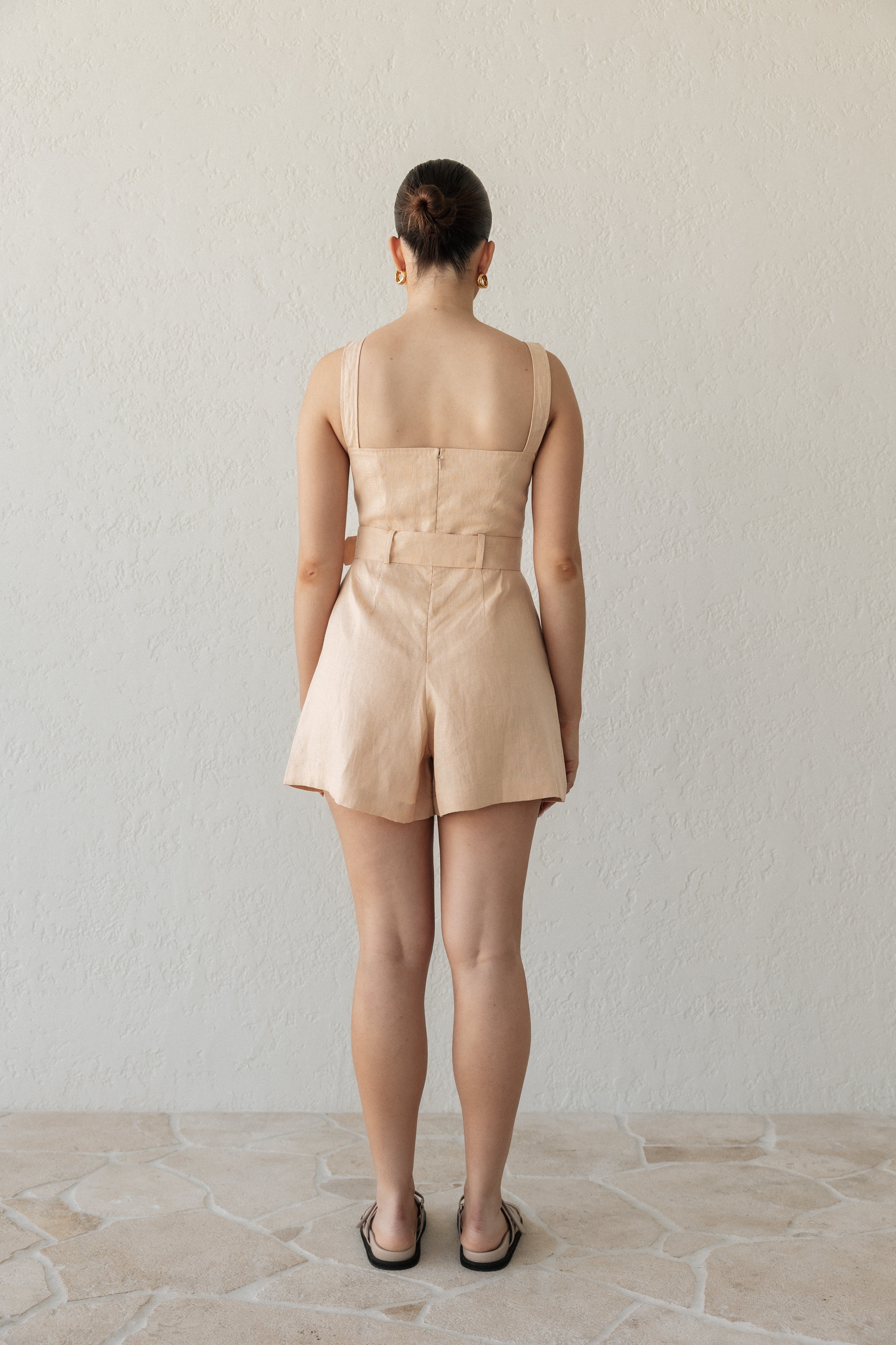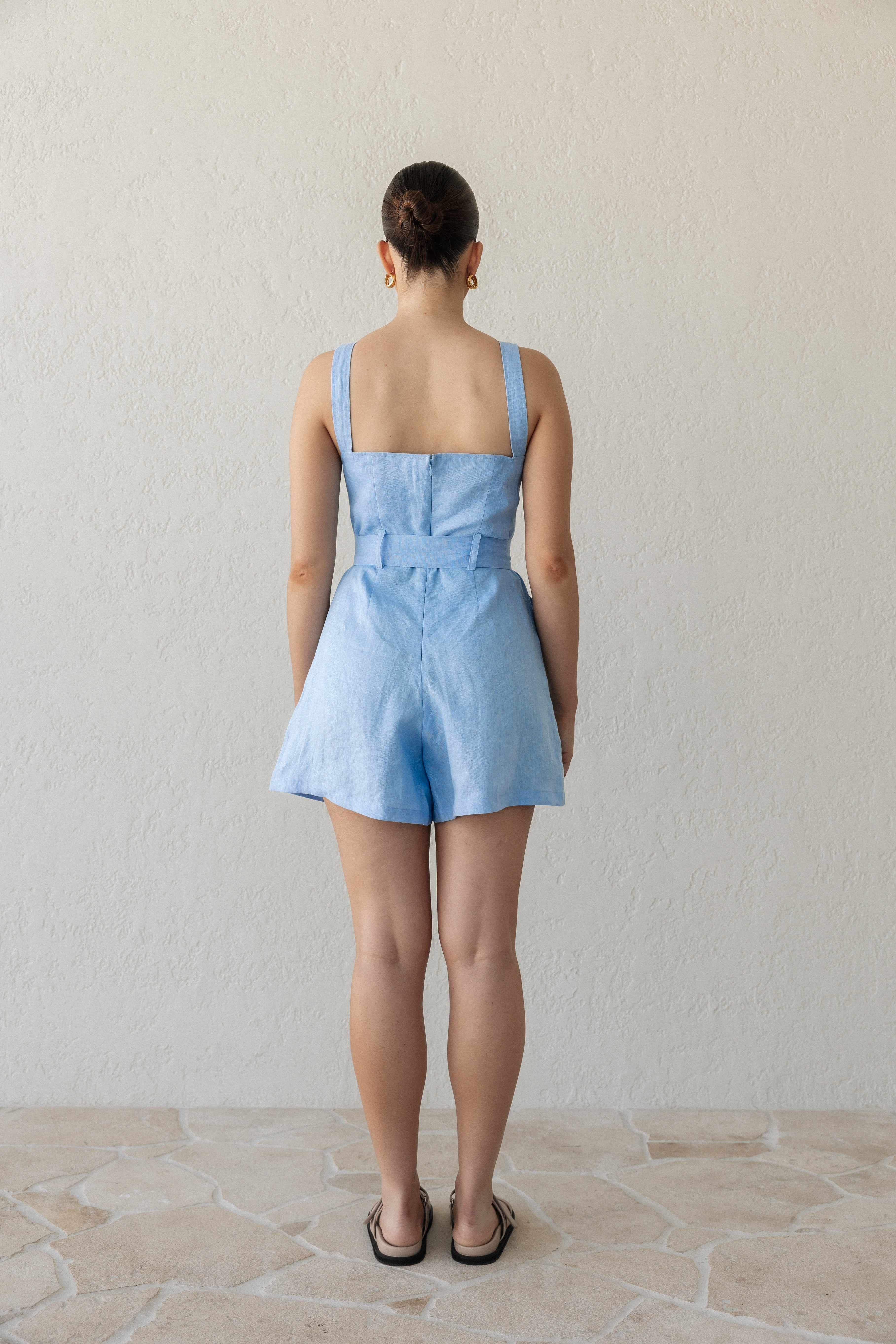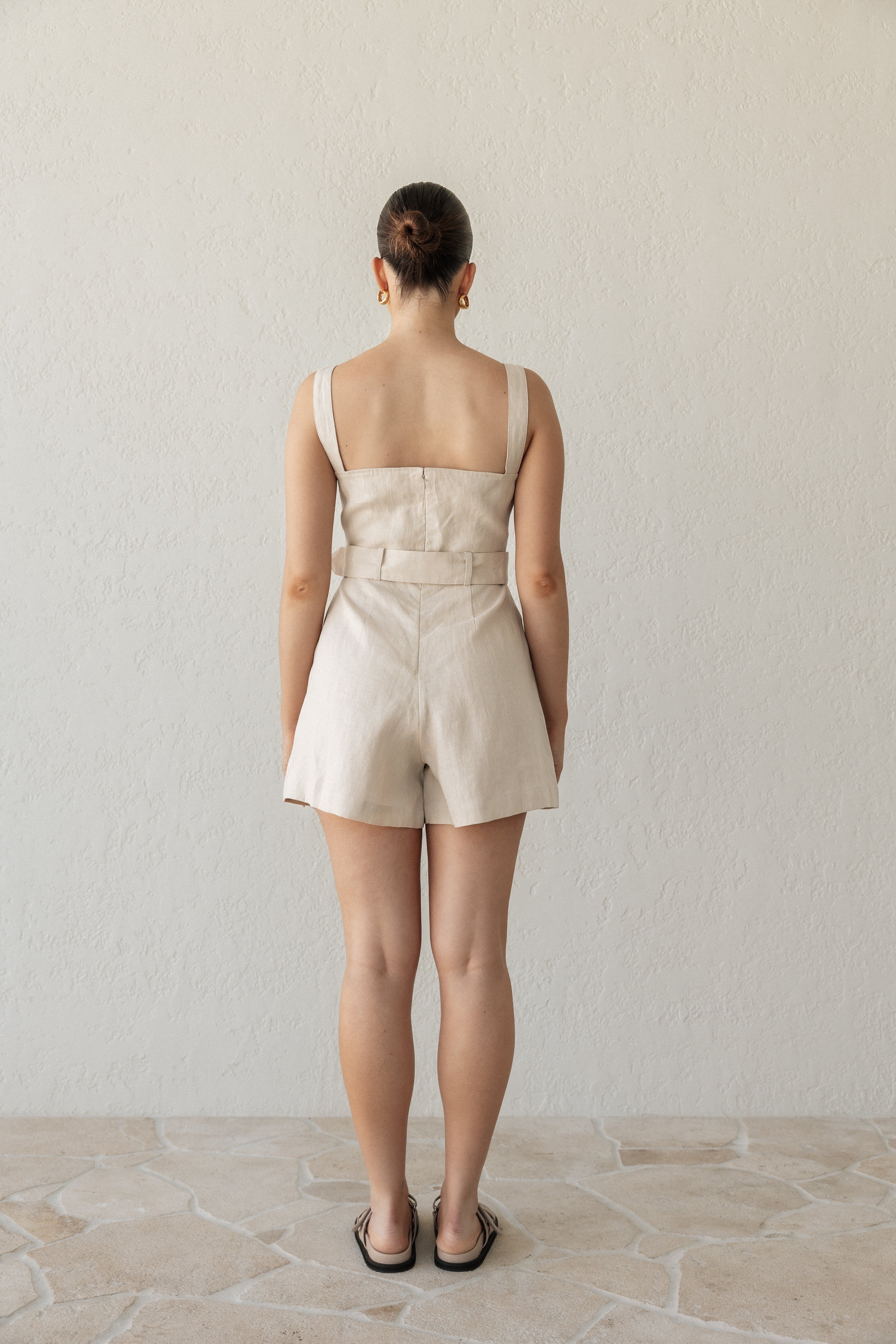 Our Nammos Playsuit is the new and fresh take on our Signature Jumpsuit. A summer staple everyone wardrobe needs constructed in 100% Linen. As the volume picks up as the beach day evolves and suddenly everyone around you is dancing on tables. You throw your hair up in a ponytail, put on your favourite linen playsuit and immerse in everything that is a Summer spent at Nammos Beach, Mykonos.