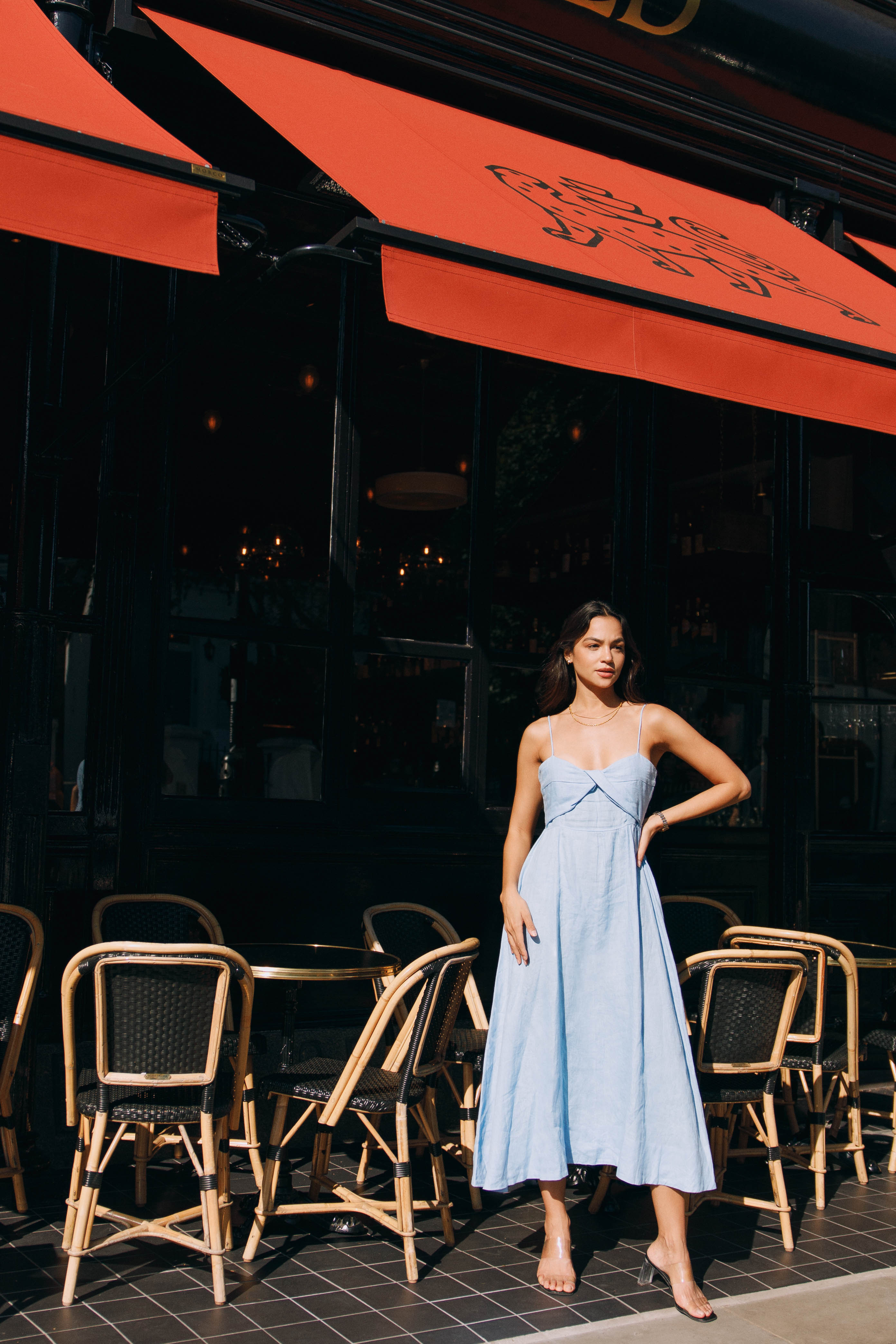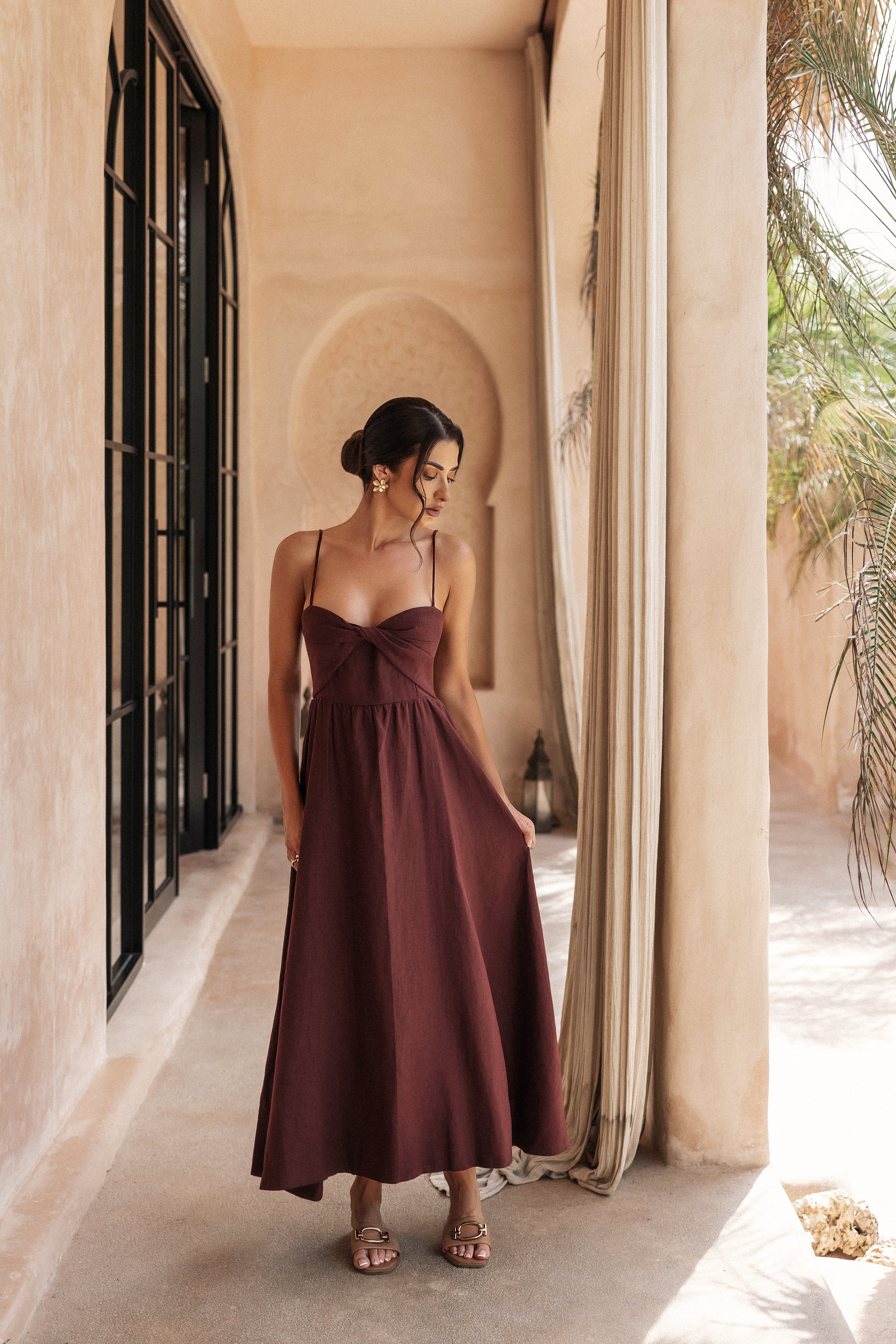 Our model wears Signature Linen Dress in AU size 8, UK size 8, US size 4.
