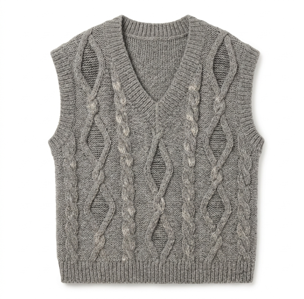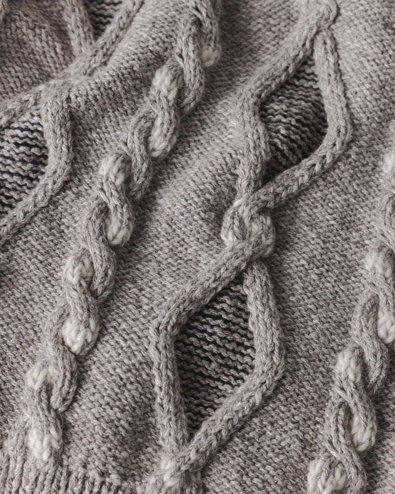 "Laimė" means "luck" in Lithuanian. The vest's cable was inspired by our Baltic roots and pagan symbols that our ancestors believed to bring good fortune. Her seriously soft yarn could have been spun by Baltic fairies, using our favourite blended yarn of baby Alpaca and Organic Pima Cotton. The oversized fit is perfect for seasonless layering. Soft to the touch and wrinkle-resistant, look closely to spot her subtle, traditional Lithuanian patterns, spinning folk stories of mythical animals and nature. Runs true to size. Recommended to take your normal size.