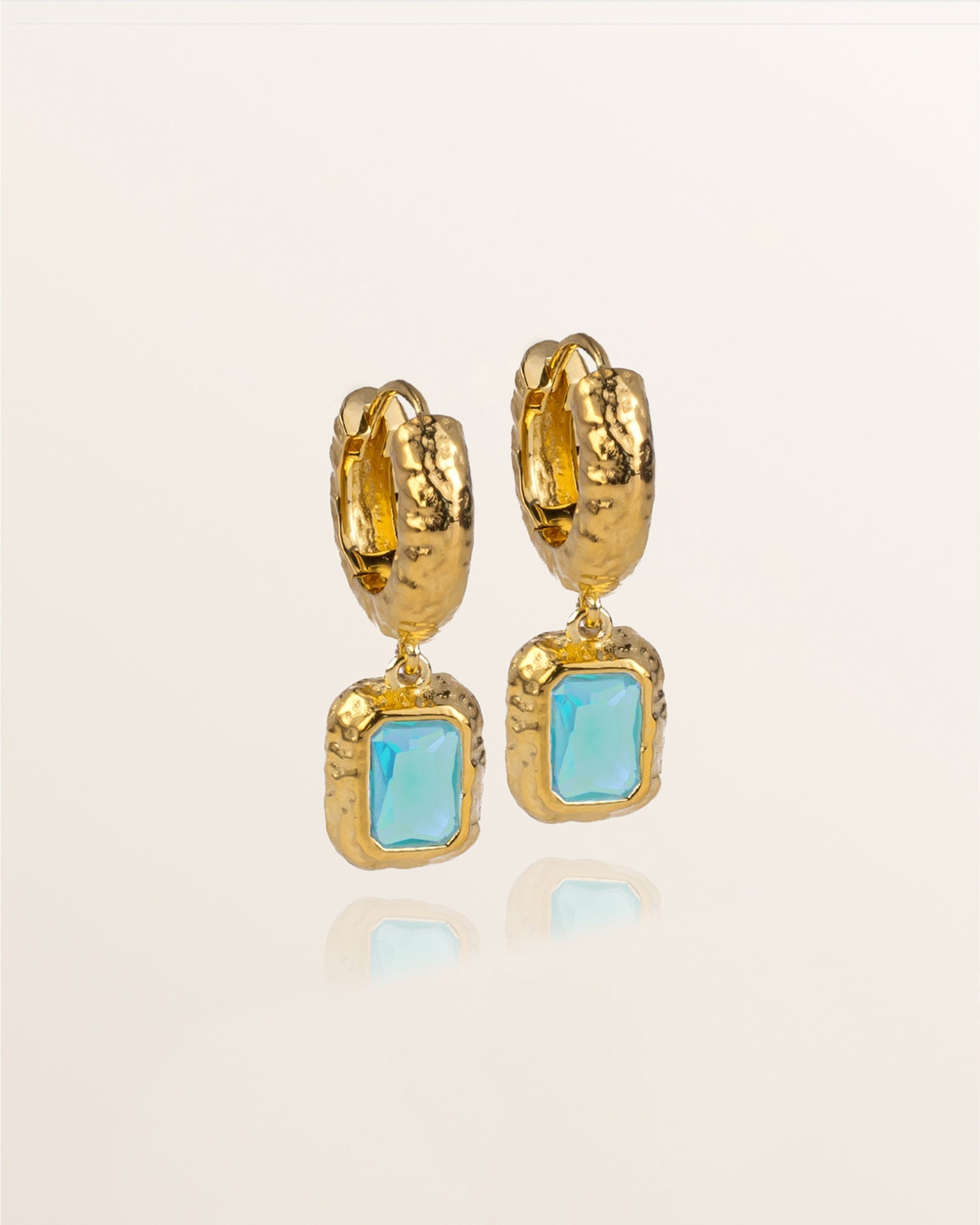 These stunning drop earrings feature a brilliant Parabia Chalcedony stone that captures light beautifully. Crafted in 18ct gold, their vibrant hue and hammered texture make them an eye-catching statement piece. Perfect for adding a pop of colour to any outfit.