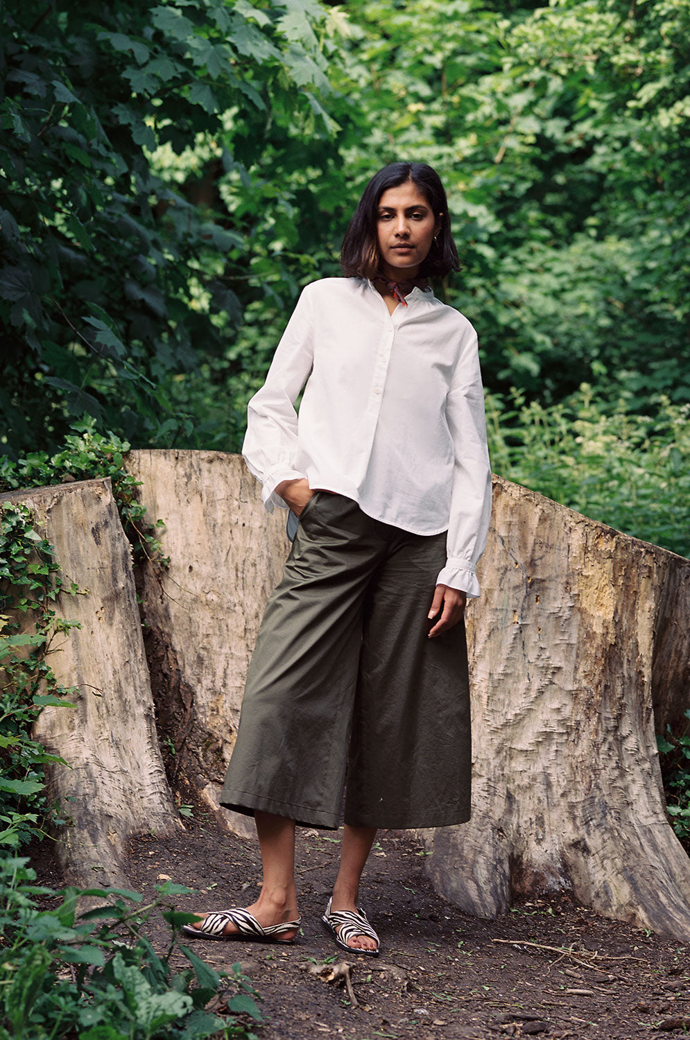 Our Marie blouse uses recycled cotton sourced from the Canclini mill in Italy; using what already exists. It’s made in London by Apparel Tasker, which, as a London-based brand, reduces our carbon footprint.