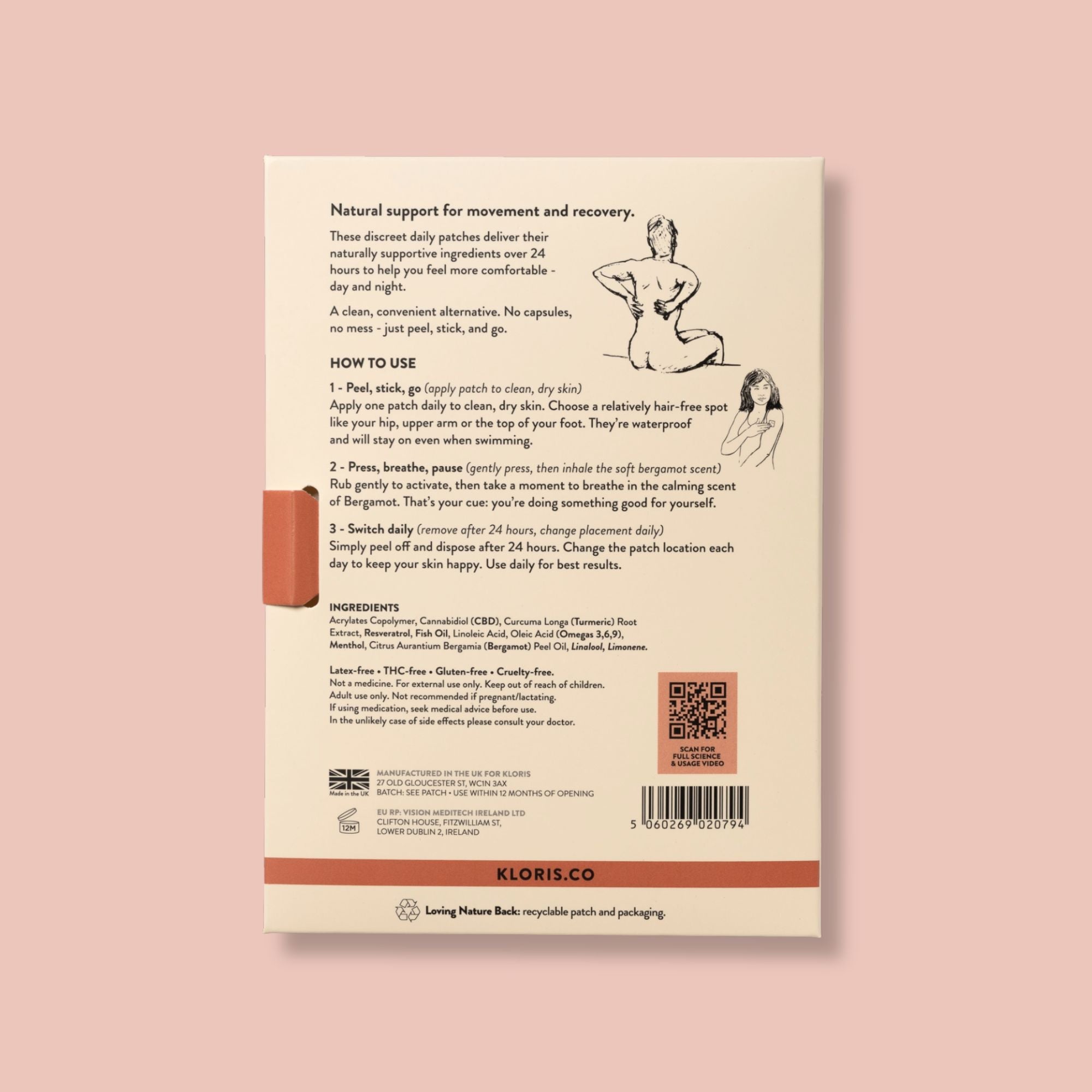 The complete package - botanical muscle and joint patches with CBD, Turmeric, Resveratrol & Omegas.