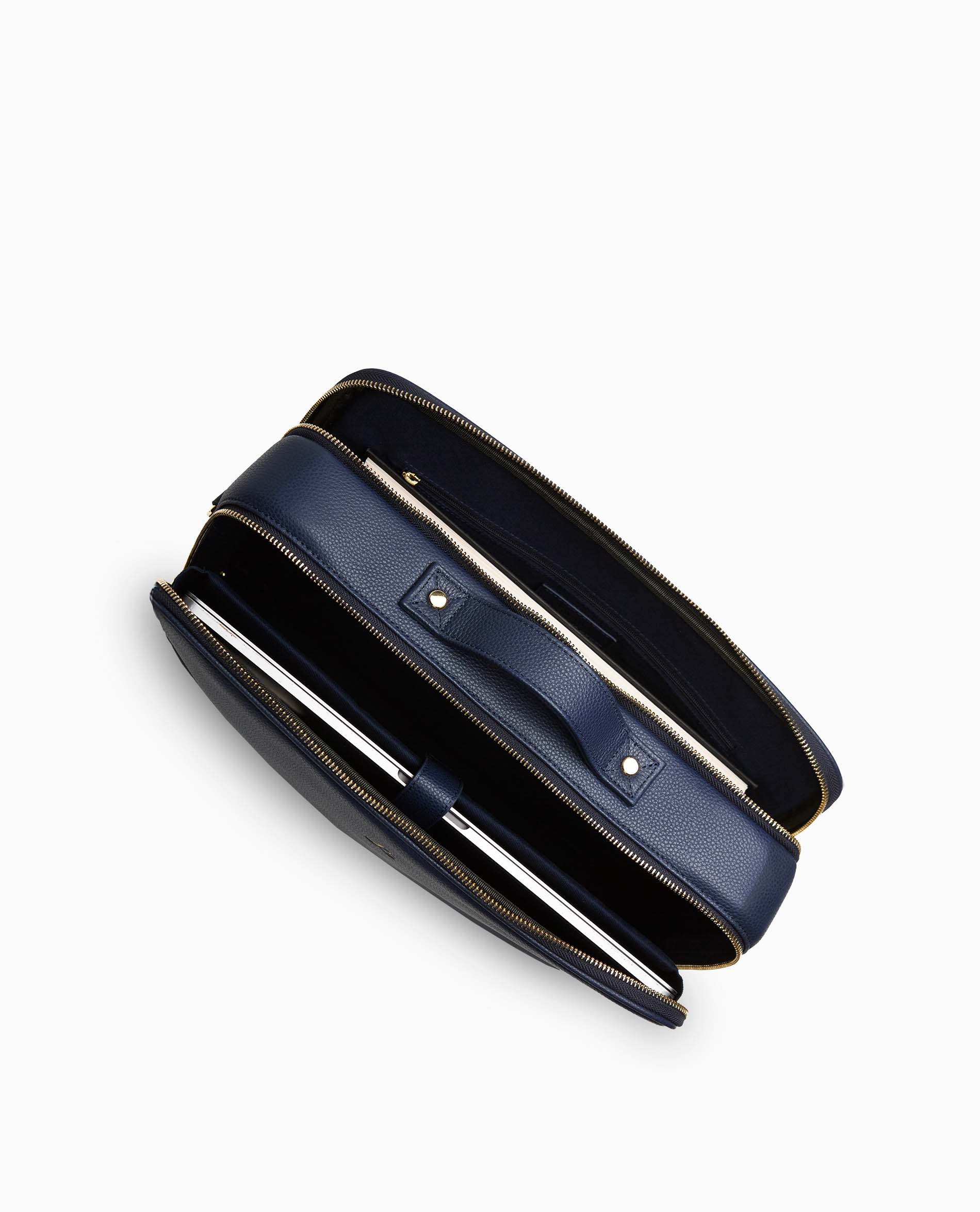 Crafted to defy conformity and made out of sustainably sourced Leather Working Group leather, it emerges as a vibrant splash of personality, transforming your workspace into a realm of inspiration and flair. More than just a protective cover, it blends functionality with style, offering ample space with multiple compartments in two large protective zip pockets for your laptop and papers to become your ultimate travel companion.