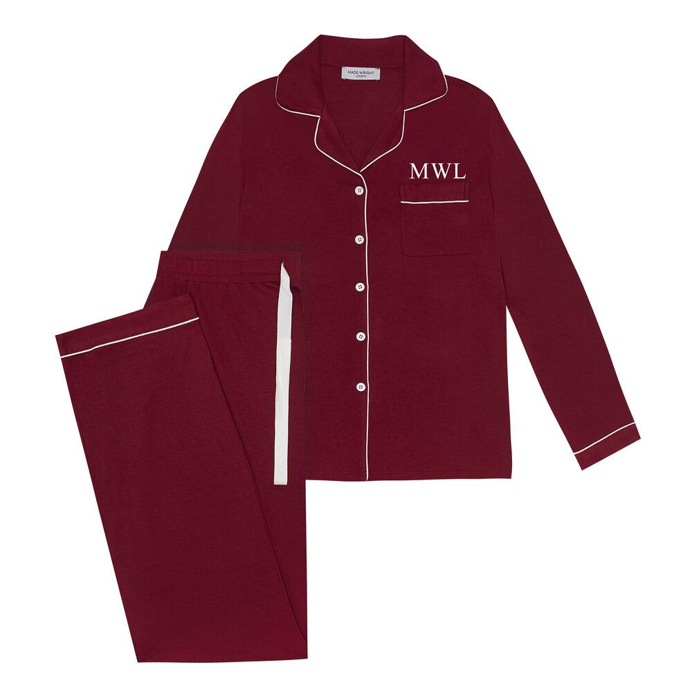 Piped Edge Bamboo Pyjama Set in Burgundy