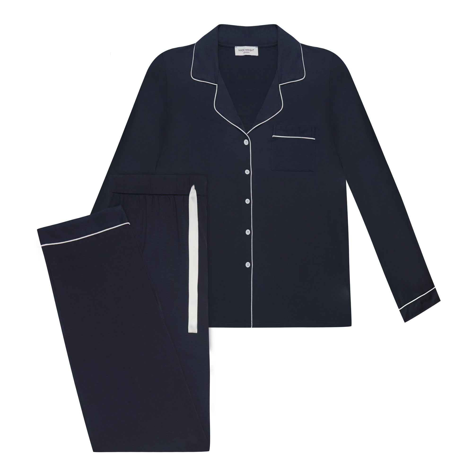 Our Piped Edge Bamboo Pyjamas are designed for everyday luxury whilst giving you the best nights sleep possible. Our classic style, with effortless tailoring, make them the comfiest (and chic-est) thing to wear to bed. Made from a Bamboo Viscose, which not only makes them eco friendly, but also designed to keep you cool in the Summer and warm in Winter.