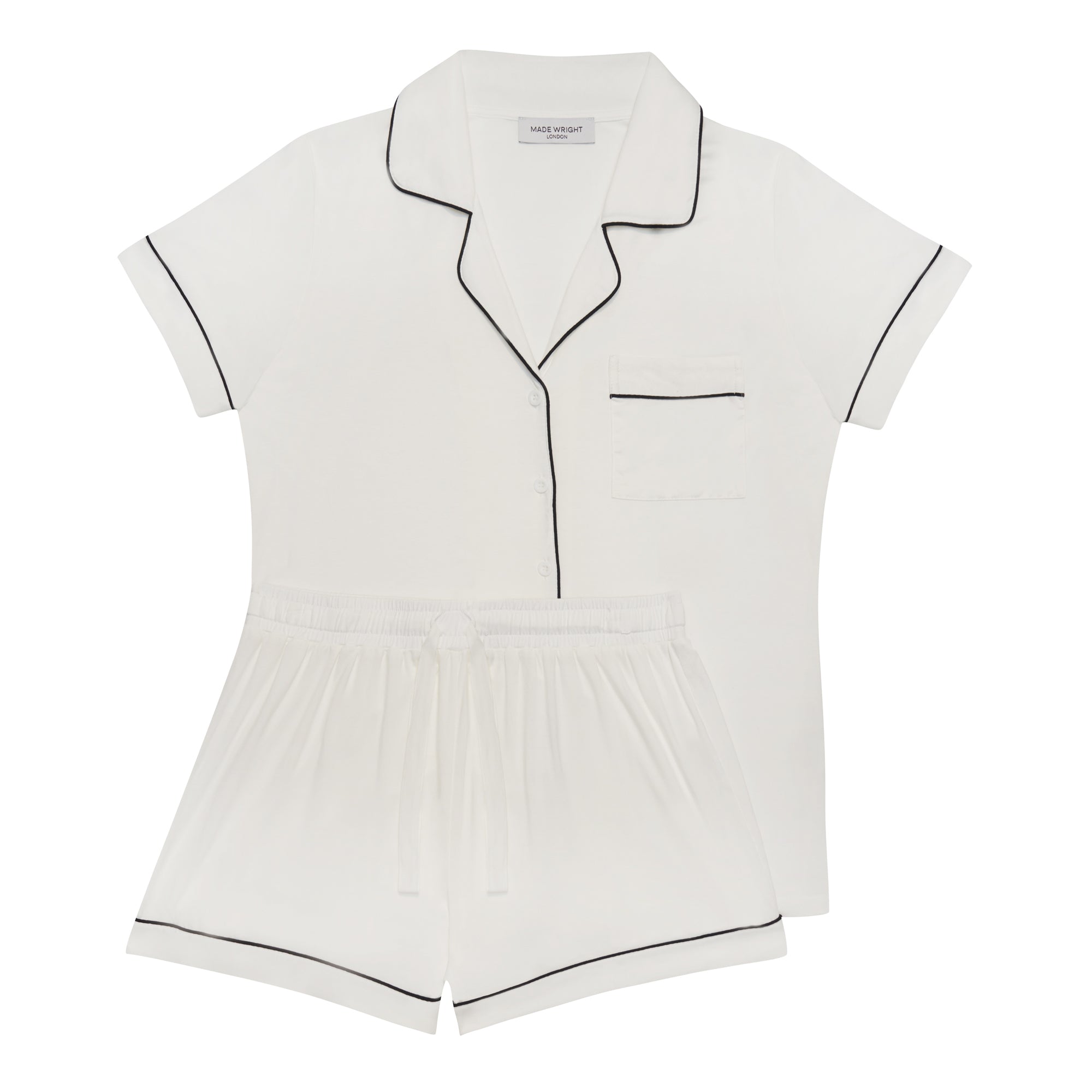 Piped Edge Bamboo Short Pyjama Set in White