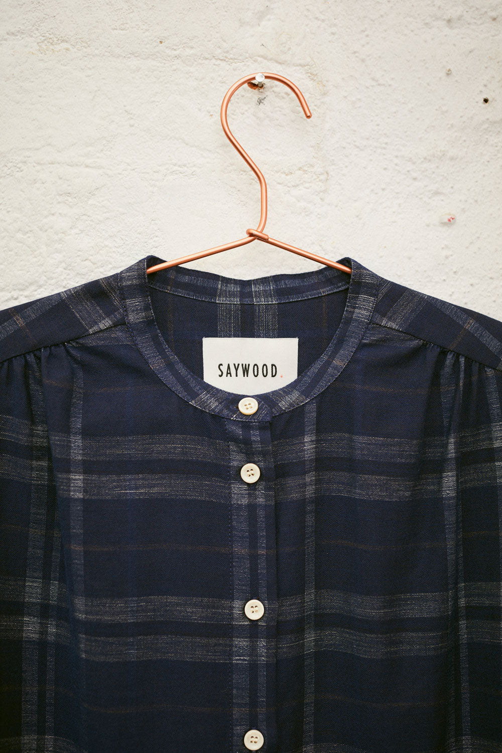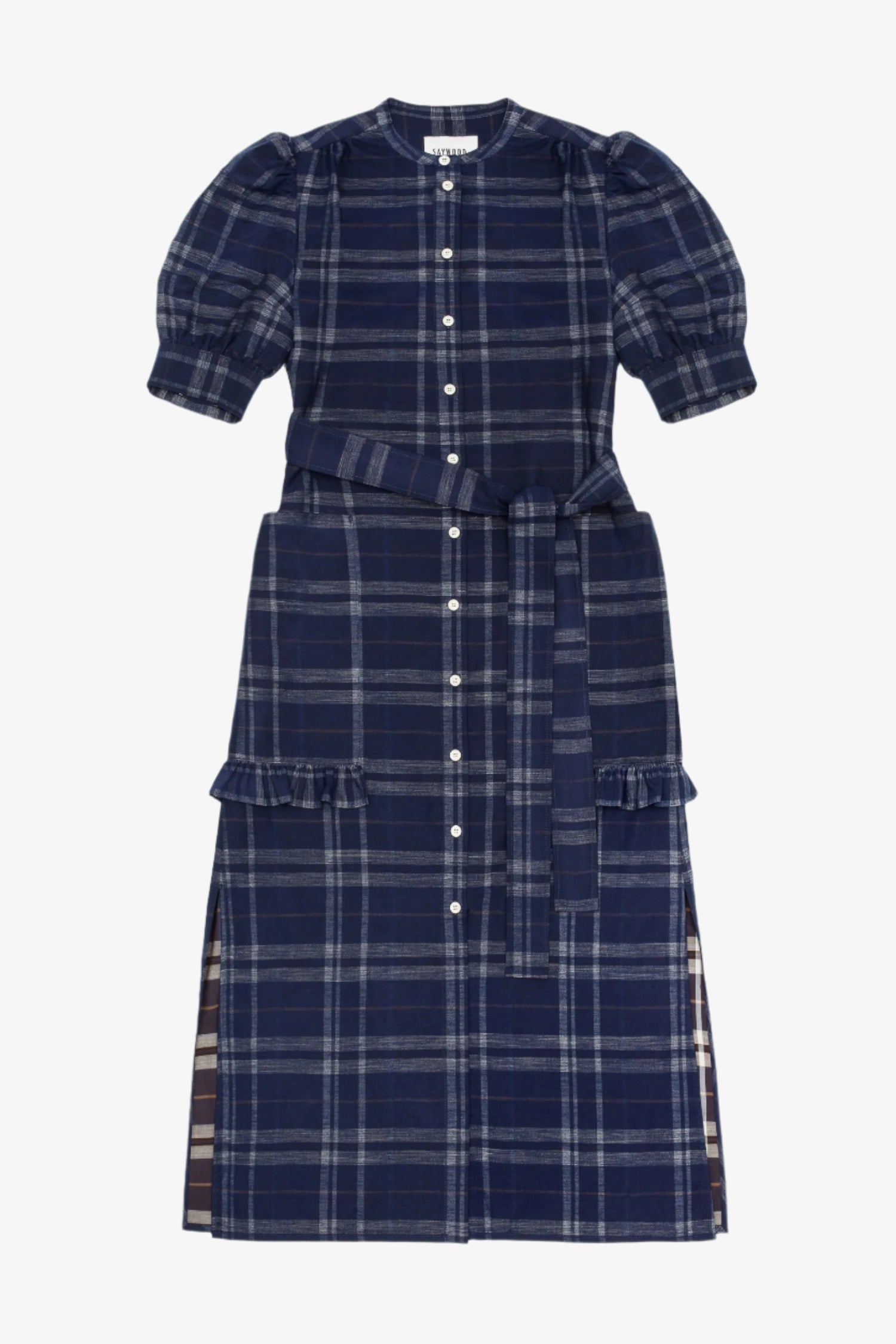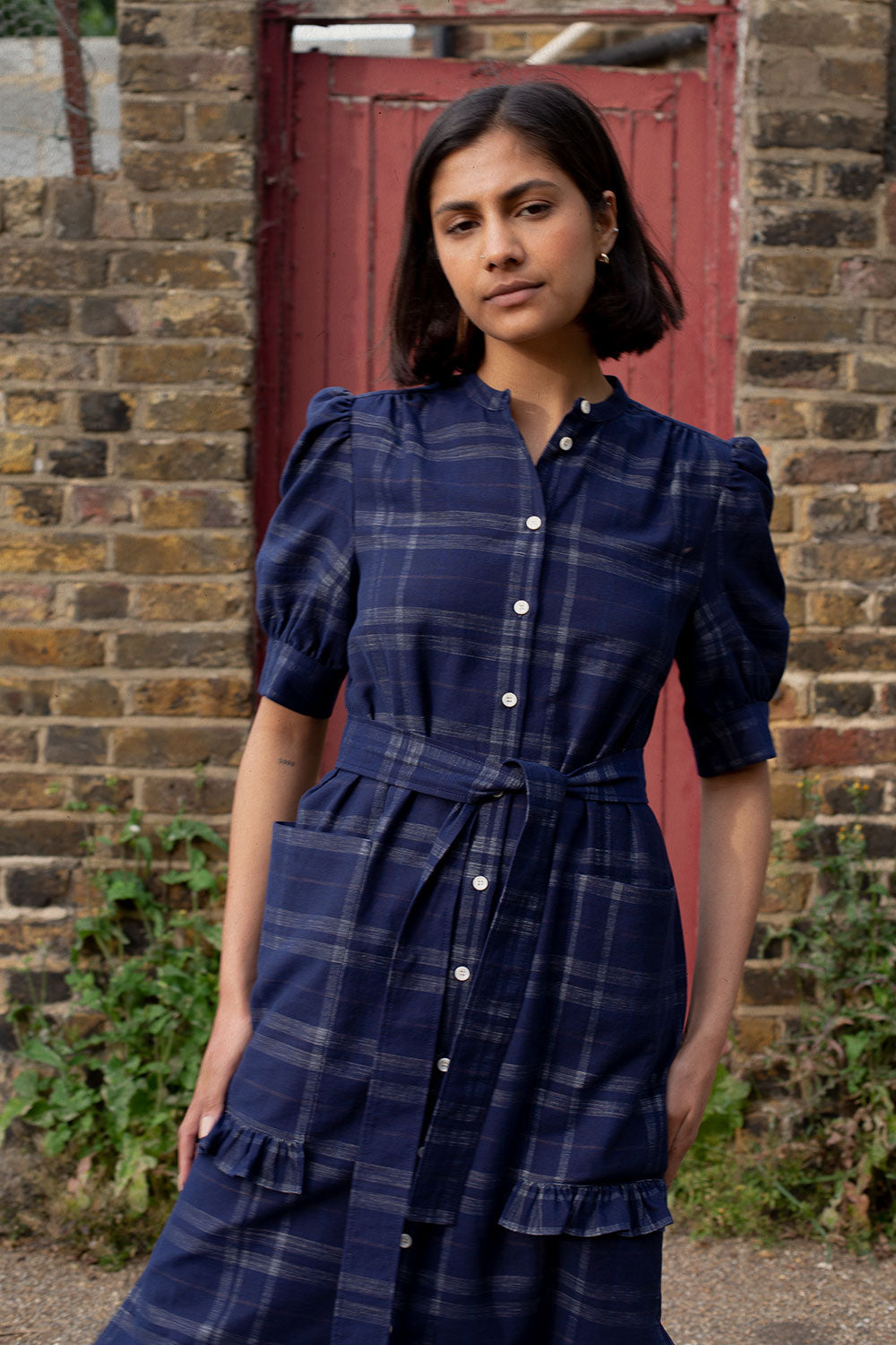 Rosa Puff Sleeve Shirtdress, Navy Check Deadstock Cotton